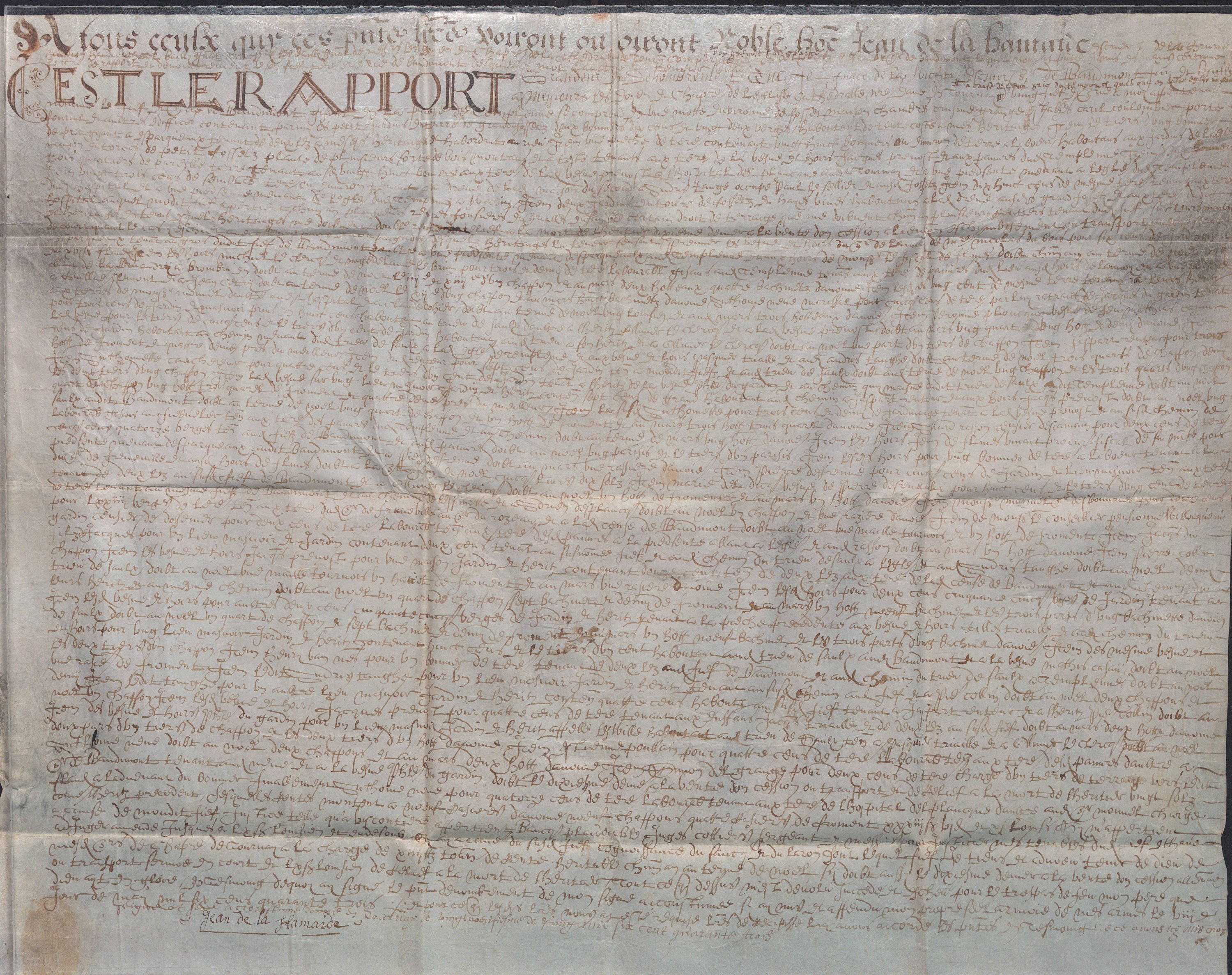 Rapport et dénombrement du fief de Baudimont, 29 juin 1643, parchemin, 43 x 49 cm ;