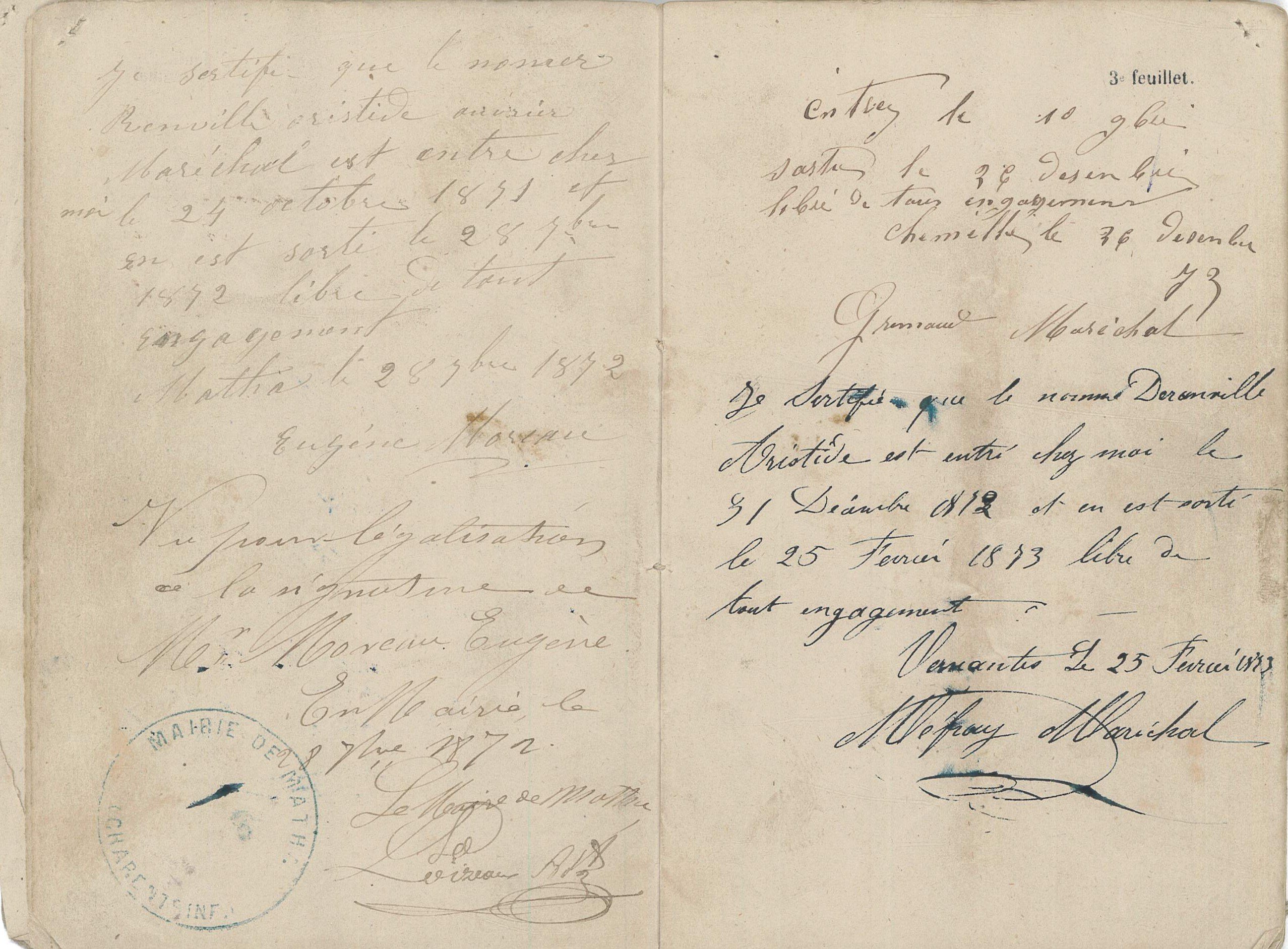 Joint : Livret d’ouvrier délivré à Ranville en 1871.