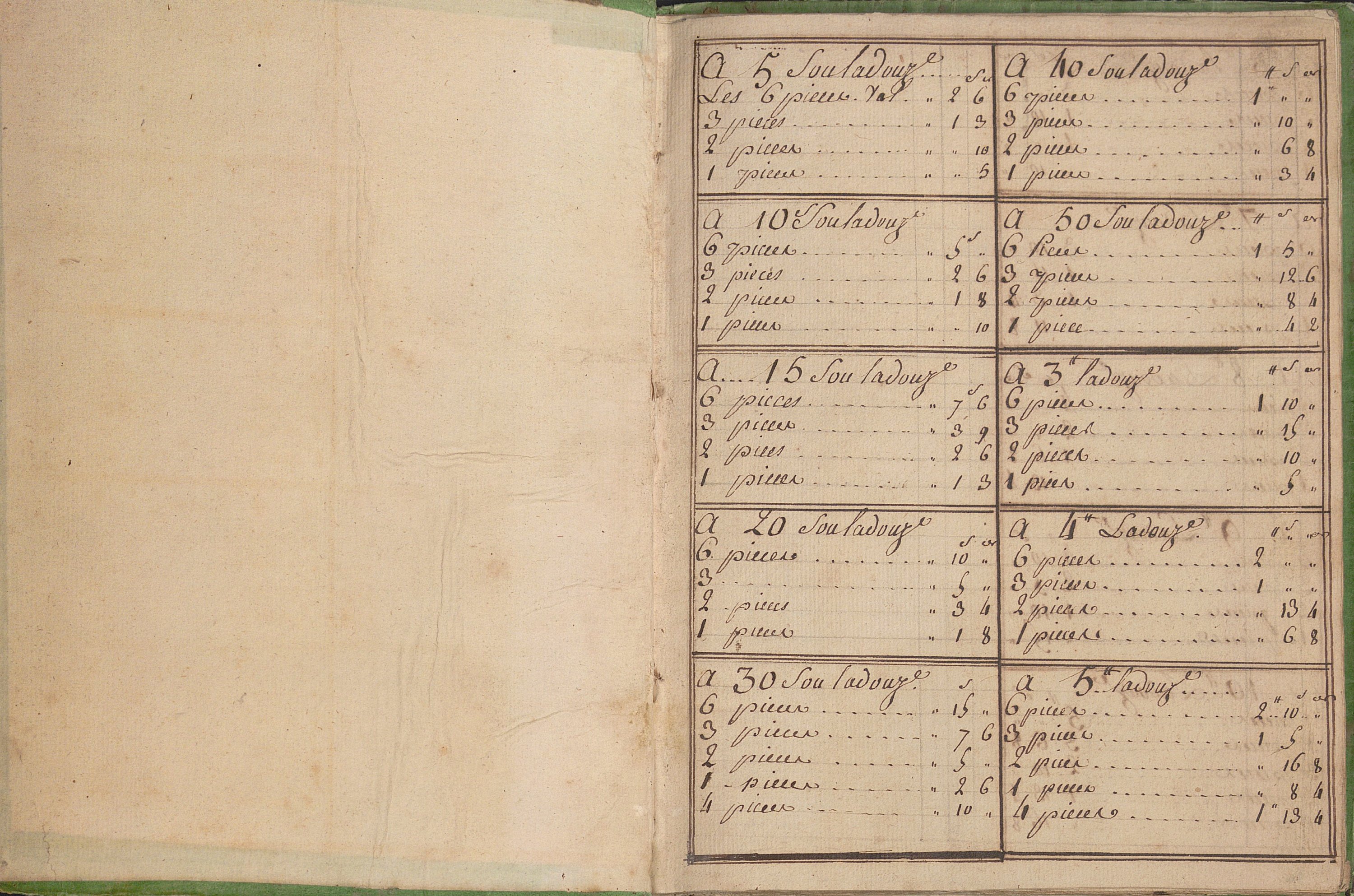 Tarif de 1787, cahier manuscrit ; Tableau comparatif des poids et mesures, 1837 ;