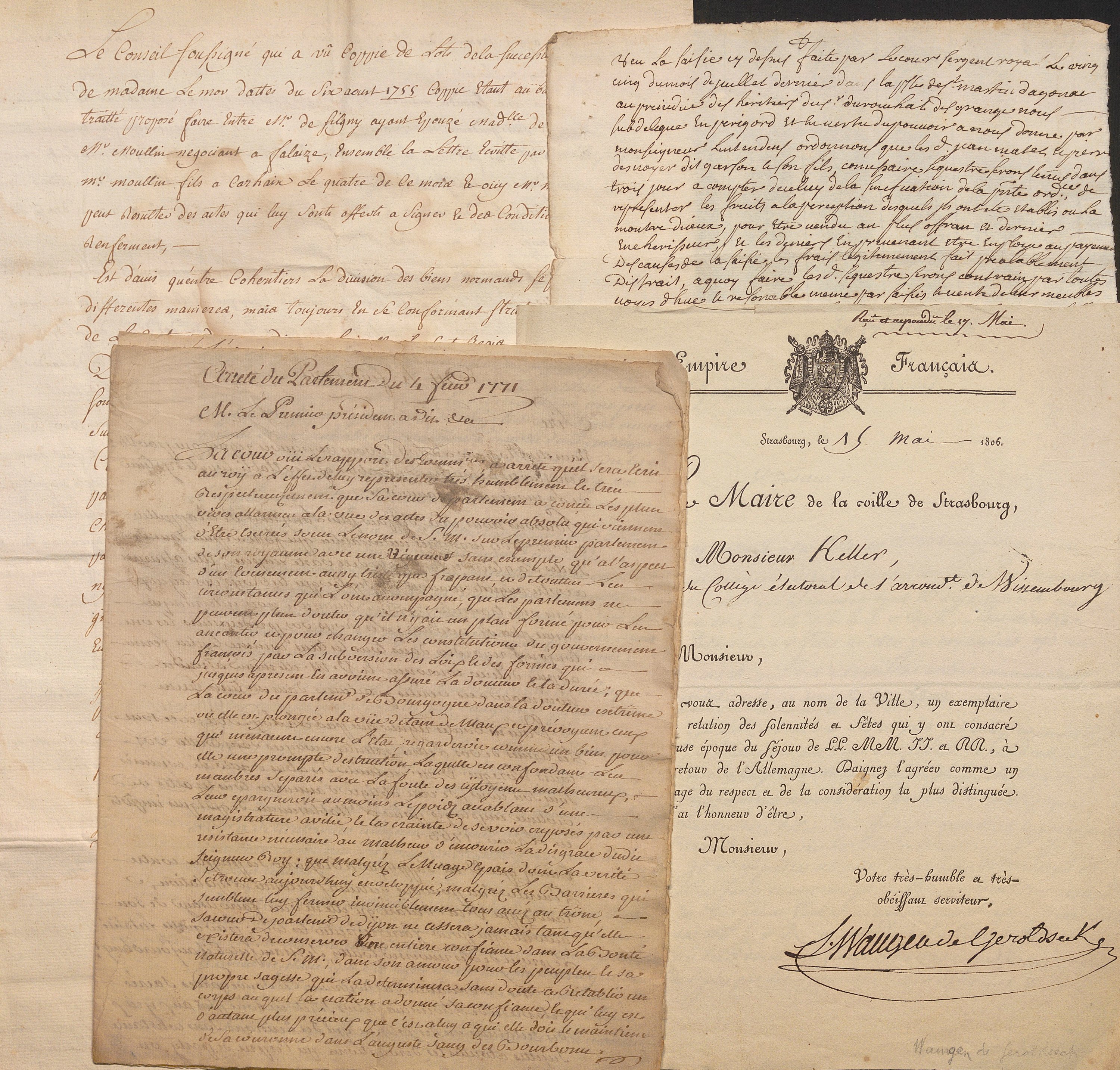 Lot de + de 50 pièces manuscrites et imprimées, papier et parchemin, 15e au 20e siècle