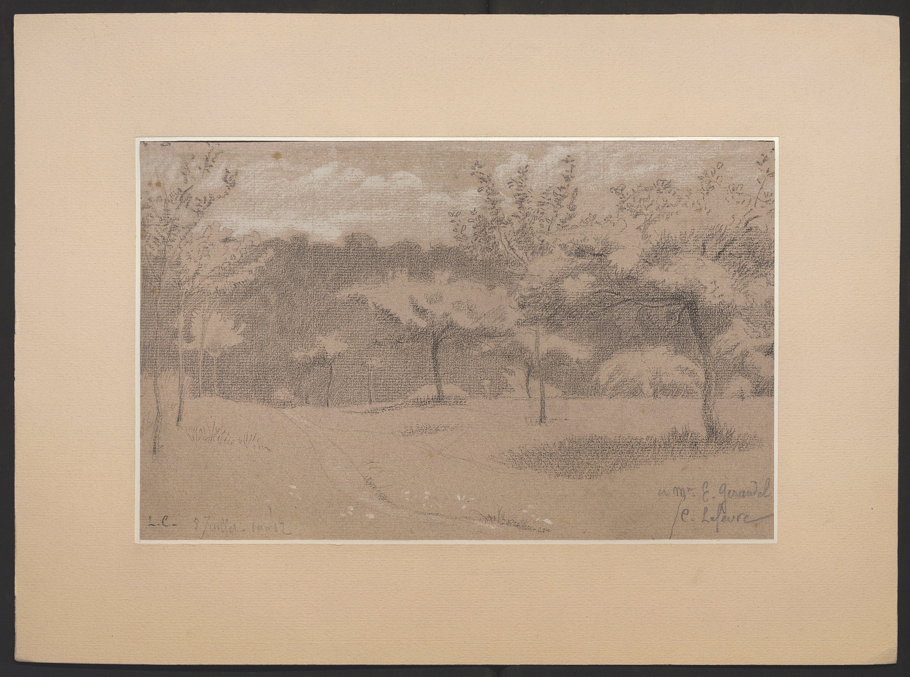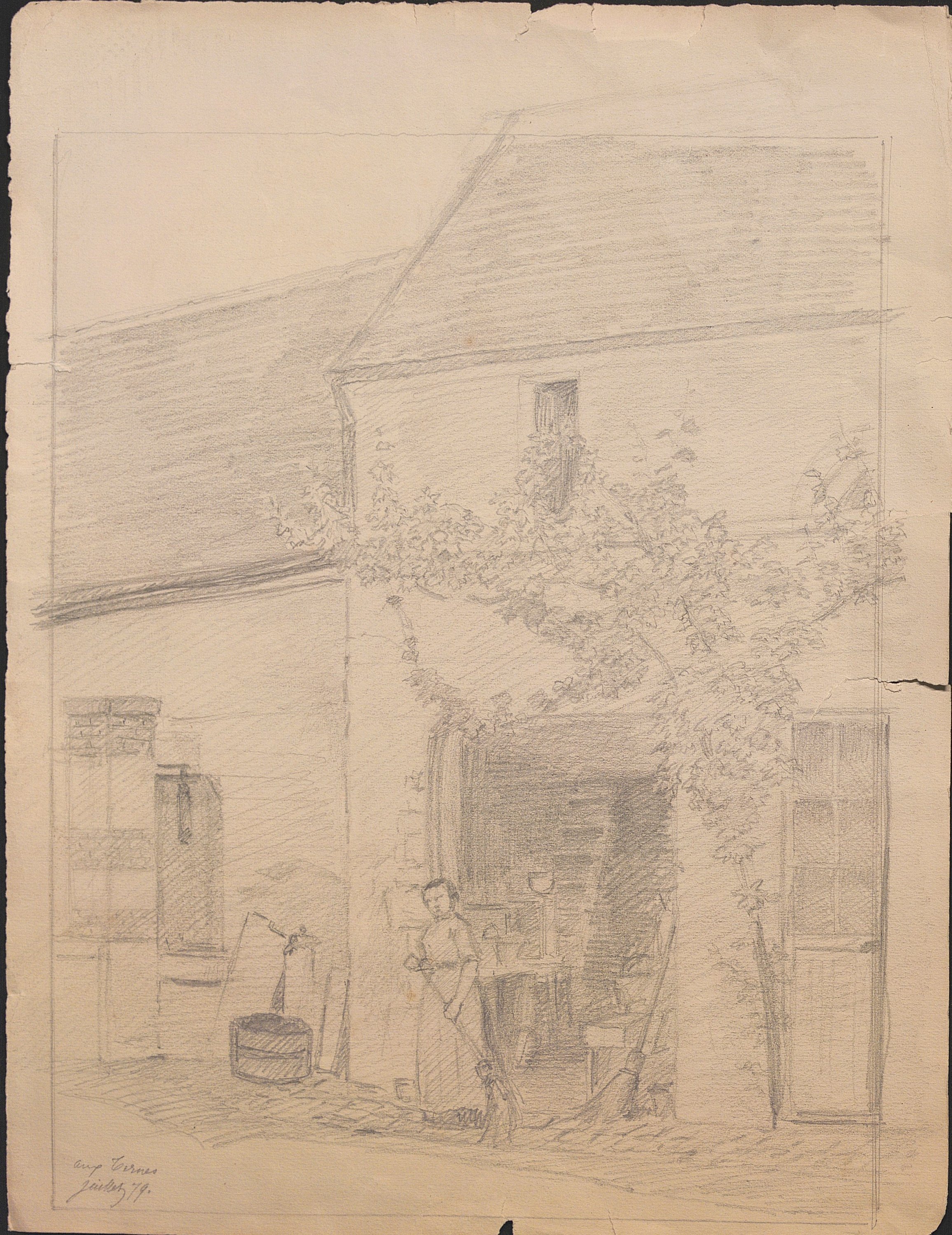 Vue d’Avranches, 8 août 1834, 20 x 31 cm ; Balayeuse devant sa maison, Les Ternes (Cantal) daté « juillet 79 », 32 x 23 cm (accdts) ; Tombes des califes au Caire, 20 x 27,5 cm ; Demeure bourgeoise de M. Fourcade à Caraman (Haute-Garonne), vers 1870-1880, crayon, 13 x 20 cm ; Sicile, Monreale, le Dôme, 13 x 11,5 cm ; etc.