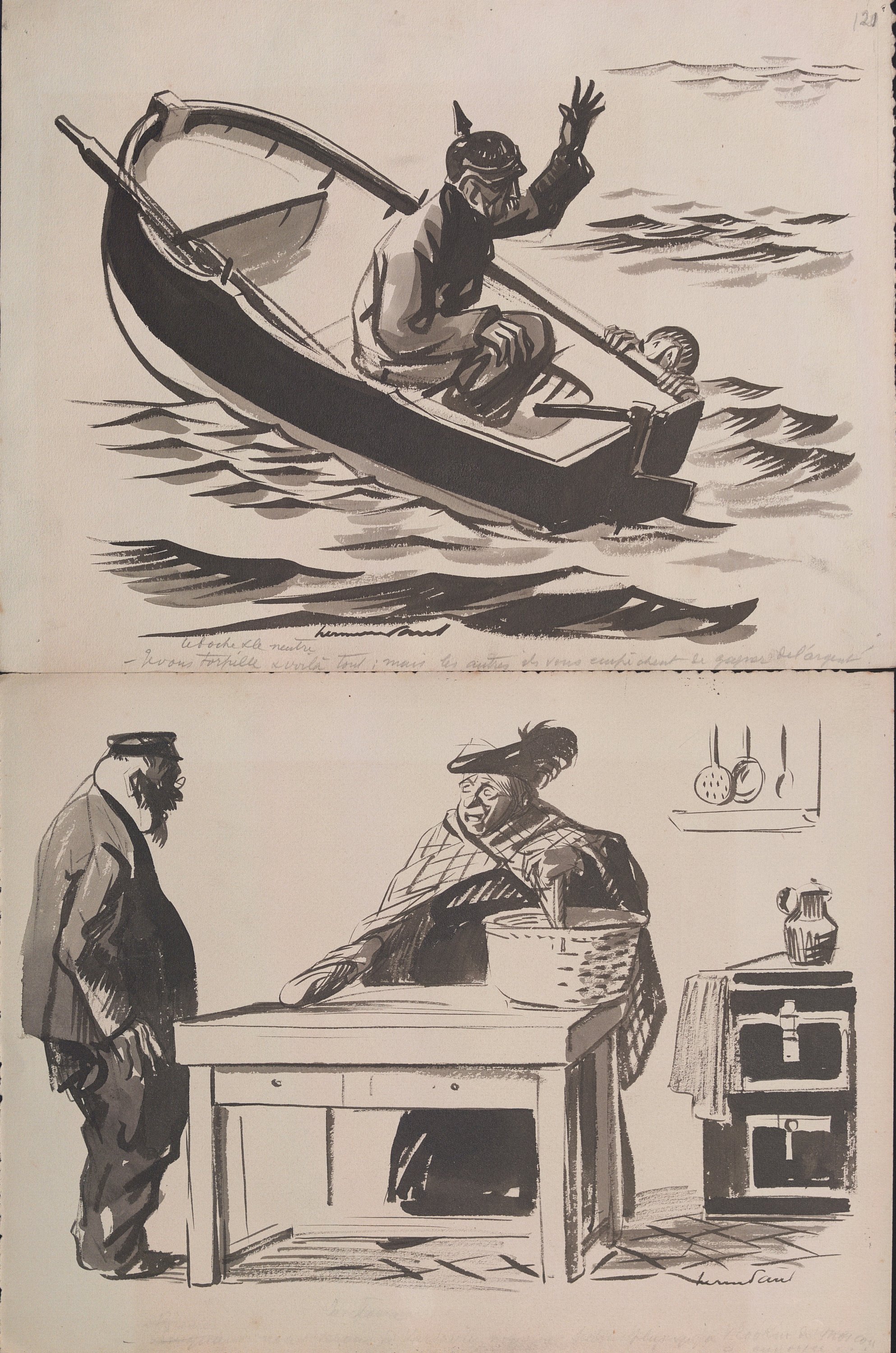 Il s’agit à la fois des ébauches et dessins préparatoires en vue de leur publication dans la presse.