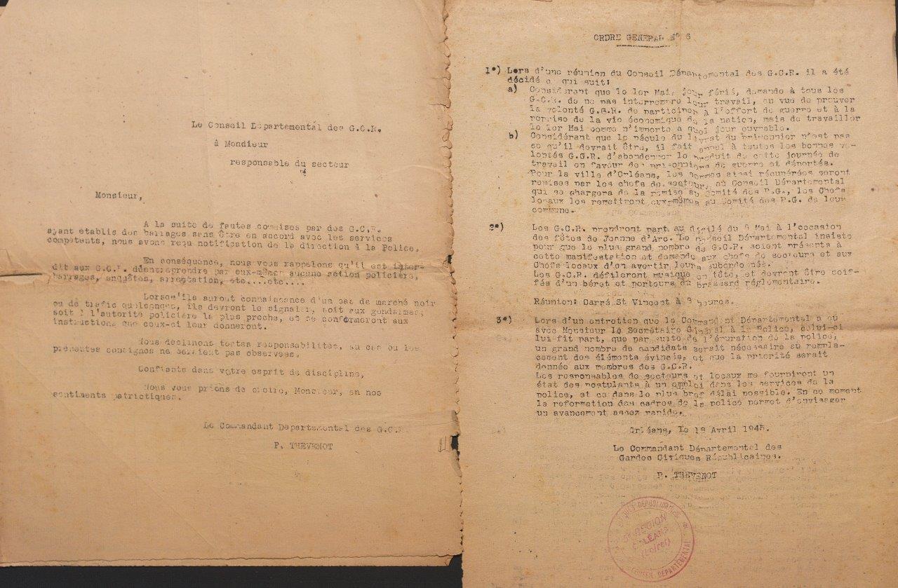 Réunion de tracts et circulaires produits dans les années 1930 par l’Association des travailleurs sans Dieu, et à la Libération par le Comité départemental de Libération du Loiret et par les Gardes Civiques Républicaines à Orléans.