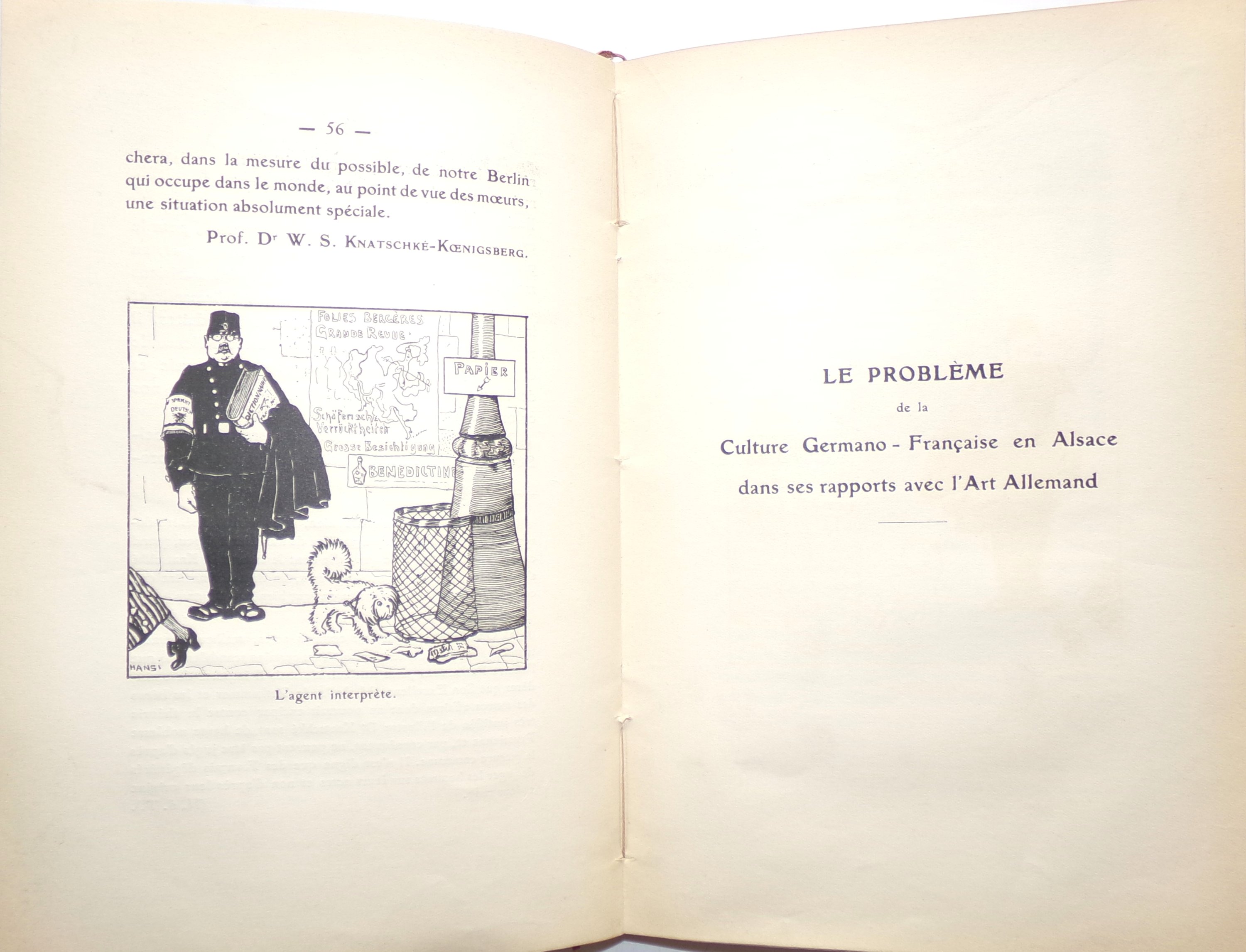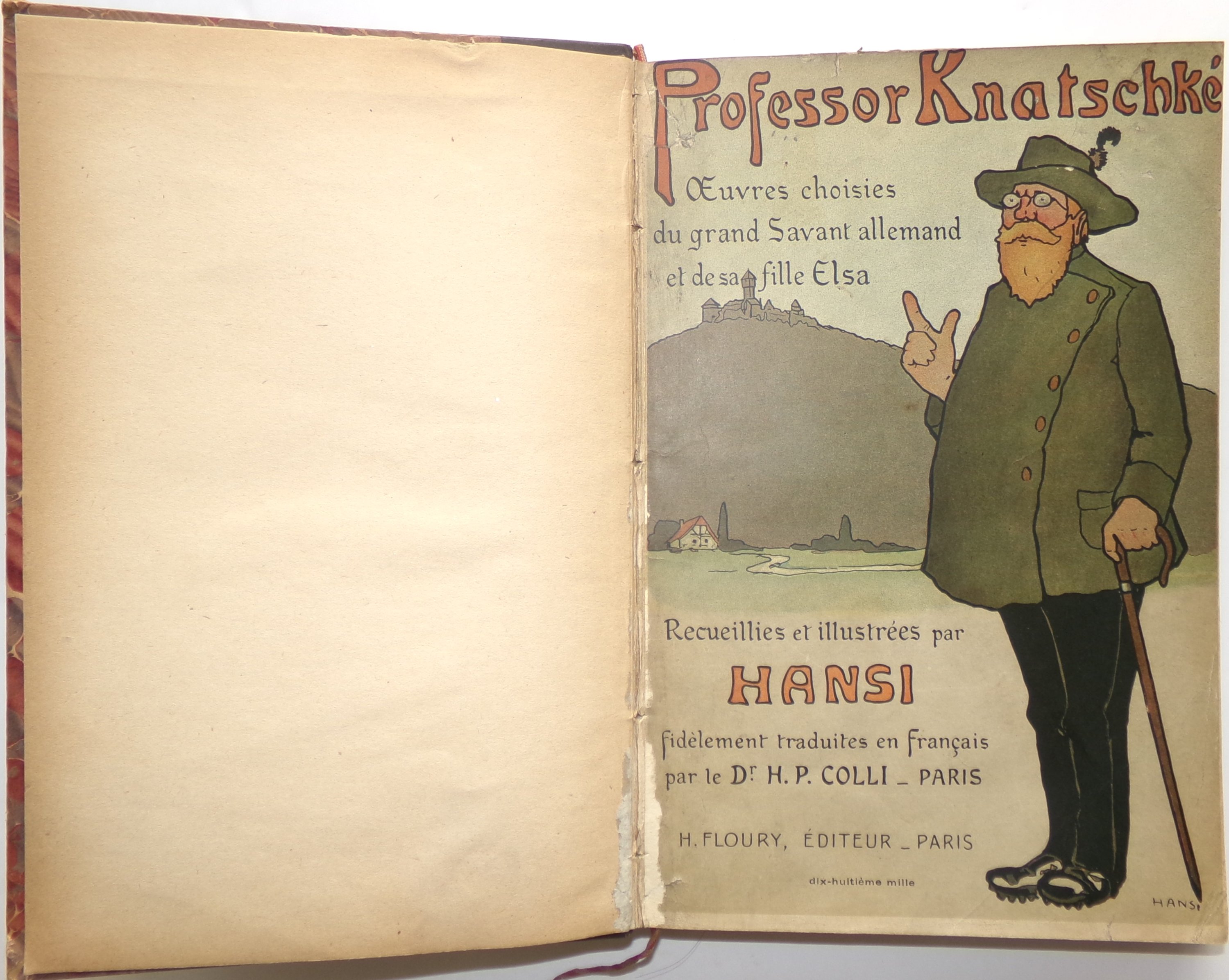 Jean-Jacques Waltz dit Hansi.,?Professor Knatschké. Oeuvres choisies du grand savant allemand et de sa fille Elsa. Recueillies et illustrées par Hansi. Fidèlement traduites en français par le dr. H.-P. Colli.? Paris, Floury, 1912. In-4 rel. ½ basane, 140 pp. ;