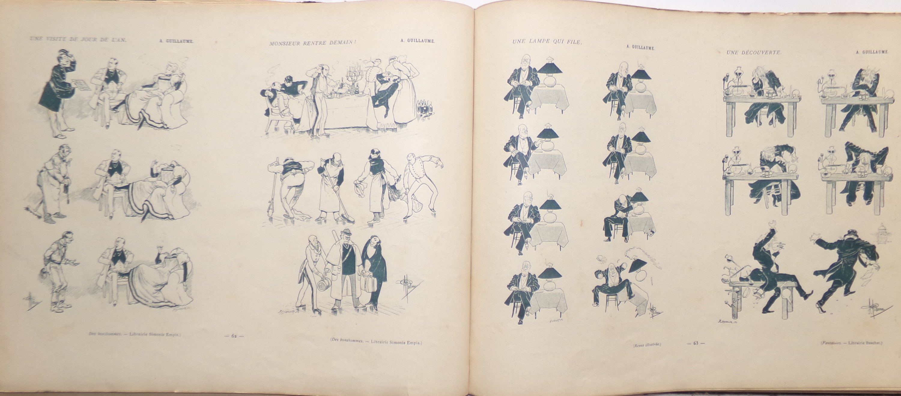 La galerie comique du dix-neuvième siècle. Paris, Strauss-Per-Lamm-Hazard, s.d. In-4 à l’italienne rel. ½ basane bleu (usures à la couv.) Recueil de caricatures d'après Caran d'Ache, Honoré Daumier, L. Boilly, Albert Robida, Ferdinand Bac, Crafty, Draner, Forain, Gerbault, A. Guillaume, Henriot, Job, Le Mouel, P. Leonnec, Mars, L. Morin, A. Robida, Gavarni, André Gill, Steinlen, Stop, Willette, etc.