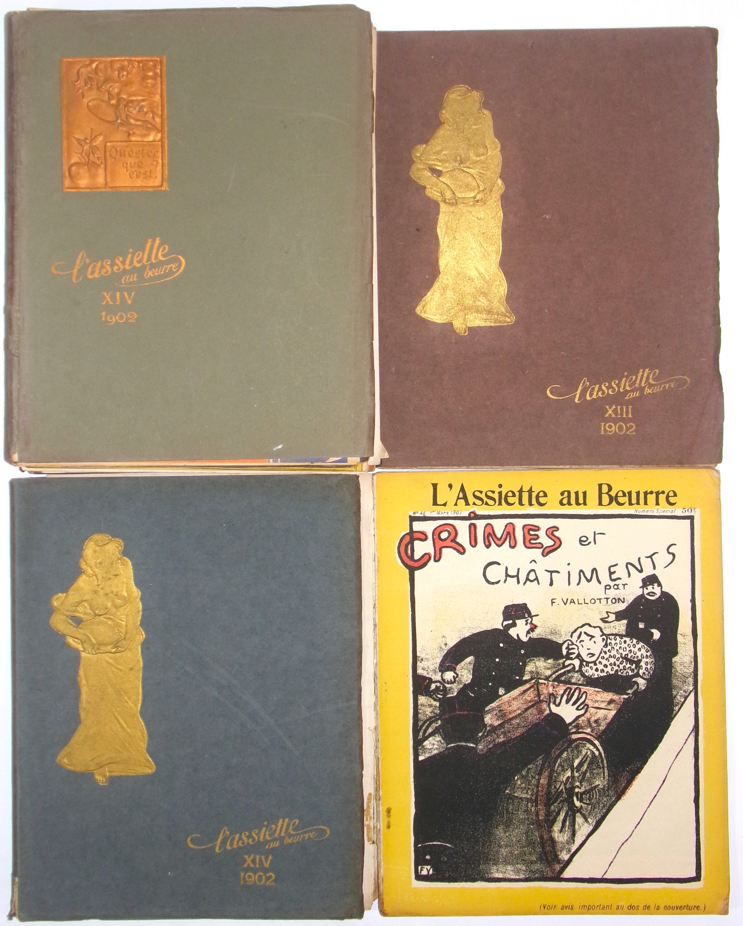 Réunion d’env. 595 numéros de la plus célèbre des revues satiriques et anticonformistes de la Belle-Epoque: L’Assiette au Beurre, publiée à Paris par les Publications modernes, 1901-1912.