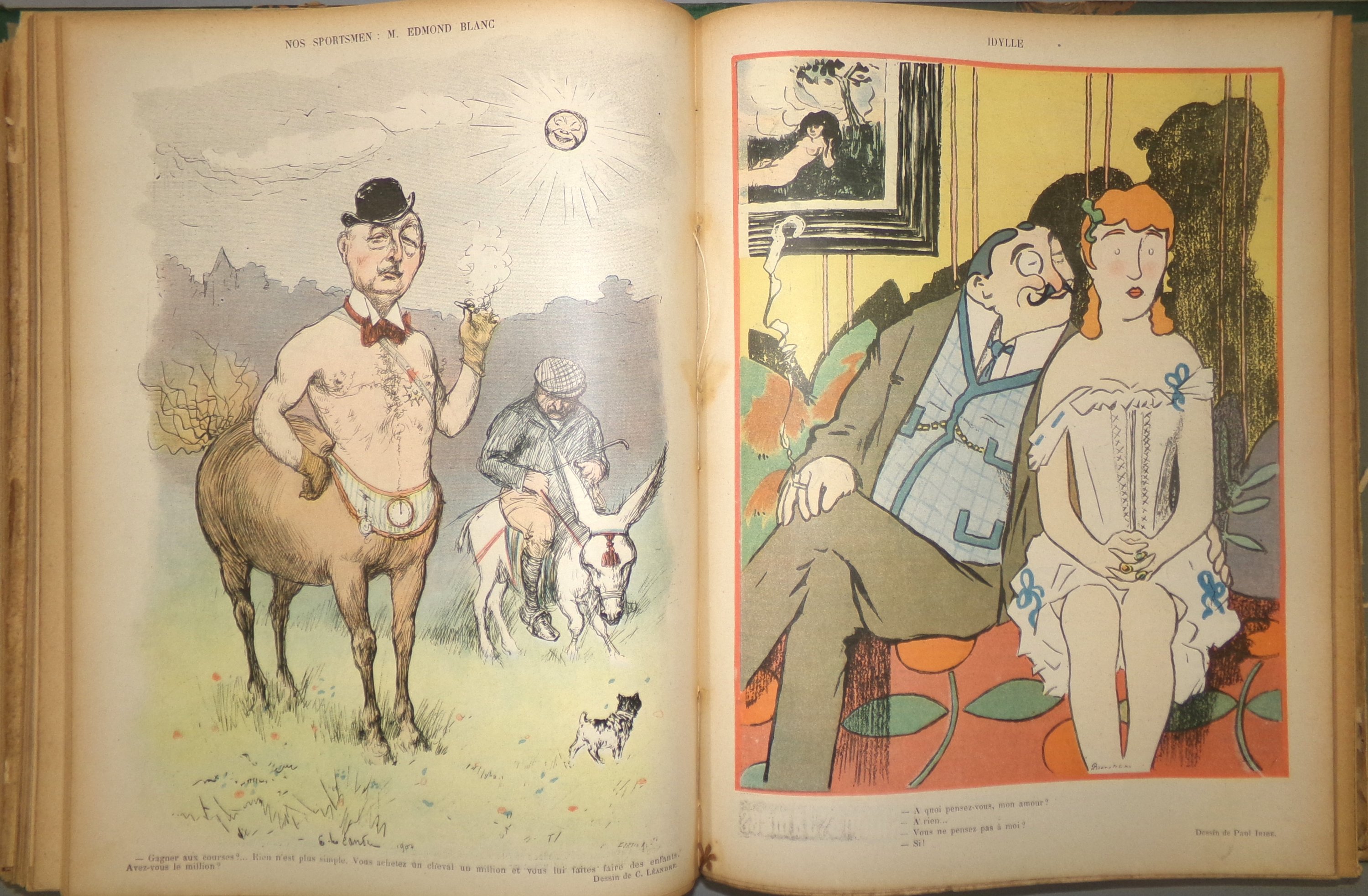 (1 vol.) n°92 (5 nov. 1904) au n°143 (28 oct. 1905), complet dont n° spécial Tous casserolés!, Le voyage de Guillaume II, Le service de deux ans, Alphonse XIII à Paris ;