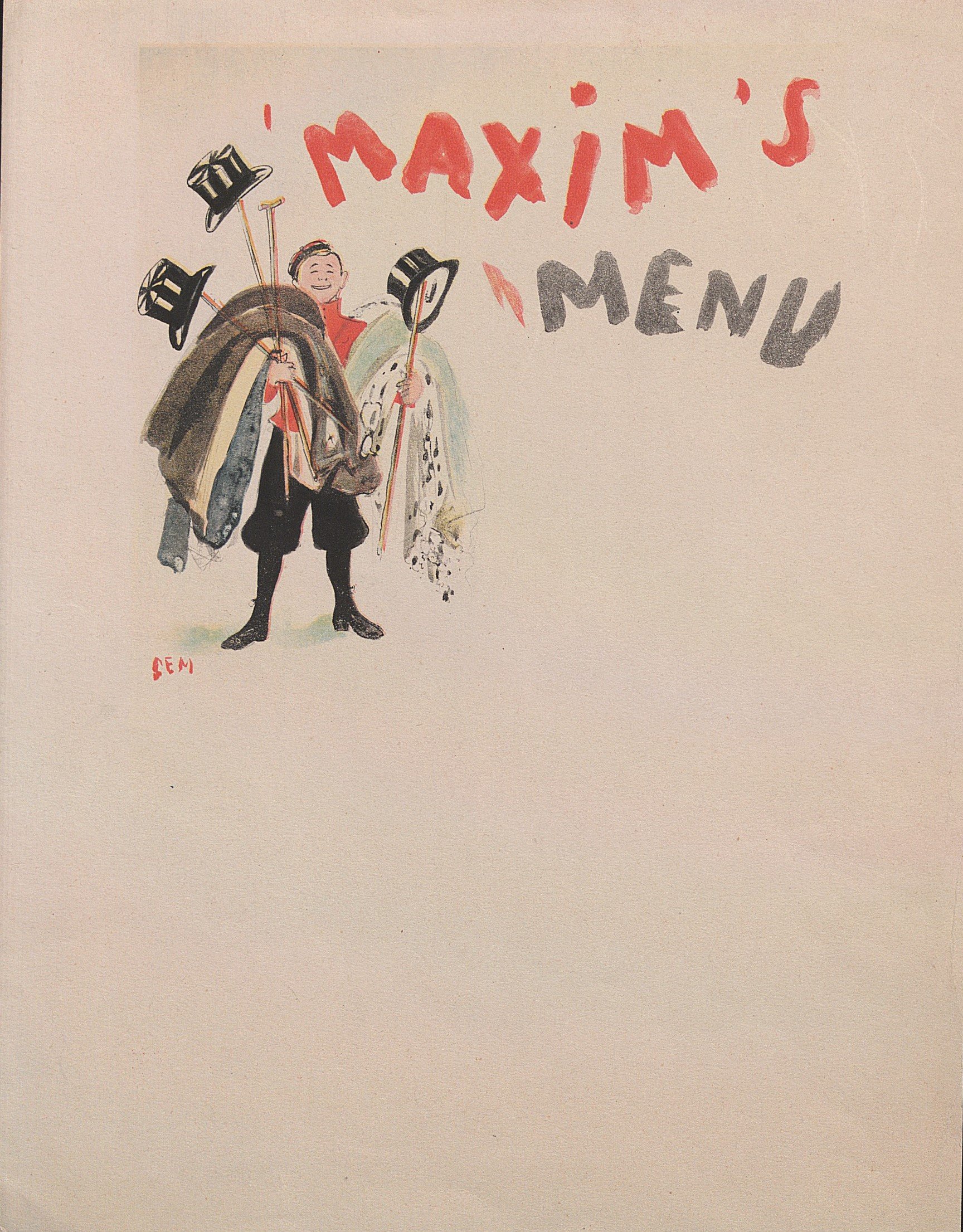 Maxim’s Menu, lithographie signée, 31 x 24 cm.