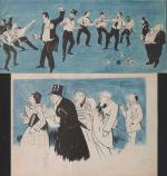 8 dessins originaux sur papier, encre, formats divers, dont: