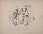 Les commères, encre, signé en bas à droite « Loth », titré et légendé au crayon « Vous savez, la voisine du cintième qui avait des douleurs asiatiques, parait qu’elle a maintenant un concert de l’estomac! », 32 x 40 cm.