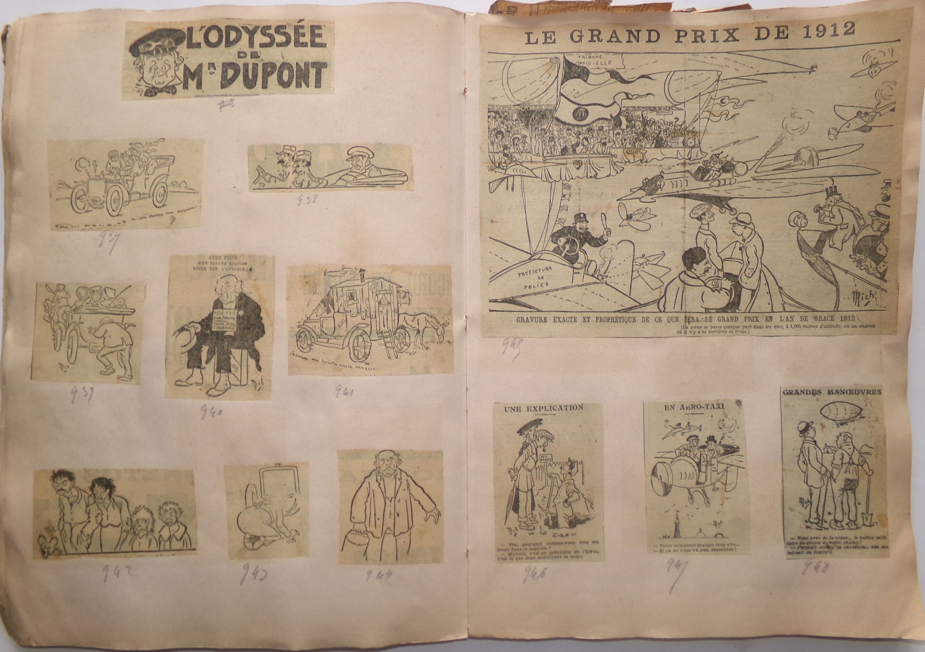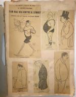 Recueil de portraits et publicités dessinés par Mich, extraits et découpés des journaux et magazines des années 1910-1920, contrecollés sur papier fort in-fol.