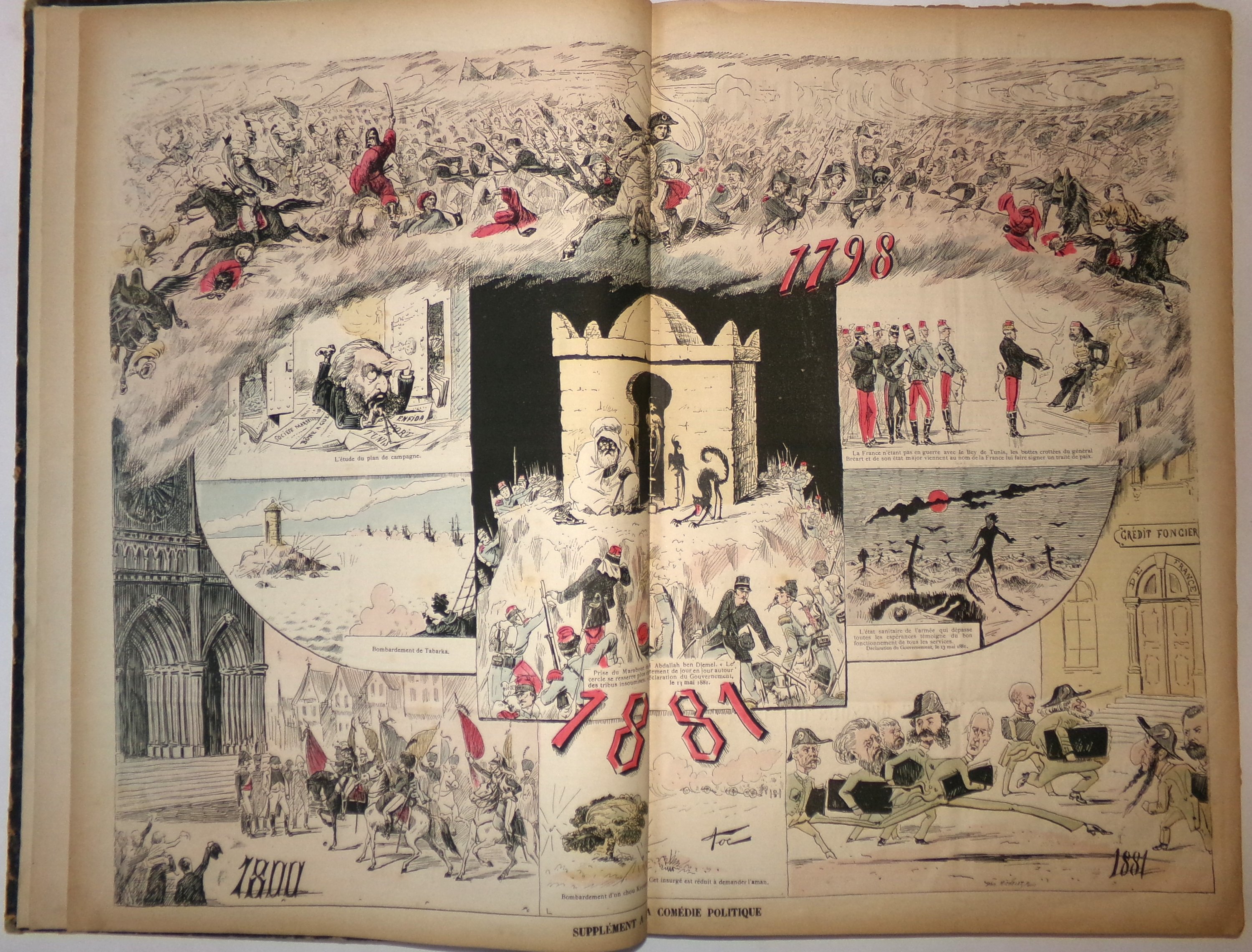 1 vol. rel. in-fol. contenant 104 ex.: n°7 supplément du 26 sept. 1880, n°10 suppl. mars 1881, n°11 suppl. 30 oct. 1881, n°12 suppl. 11 décembre 1881, numéro exceptionnel du 2 déc. 1879, n°23 du 27 avril 1879, n°45 (26 oct. 1879) au 67 (28 mars 1880), n°83 (18 juillet 1880) au 158 (25 décembre 1881).