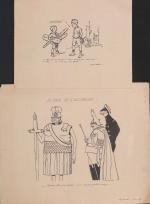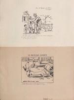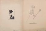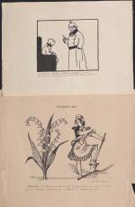Lot de 30 dessins à l’encre signés « L.L. », sur papier à dessin, reproduits à partir de dessins parus dans la presse en 1914 et 1915 (Le Matin, Les Annales, Le Journal), d’après Sacha Guitry, Paul Iribe, Poulbot, Hansi, Albert Guillaume, Radiguet, Gilbert Viardot, Boby, etc.