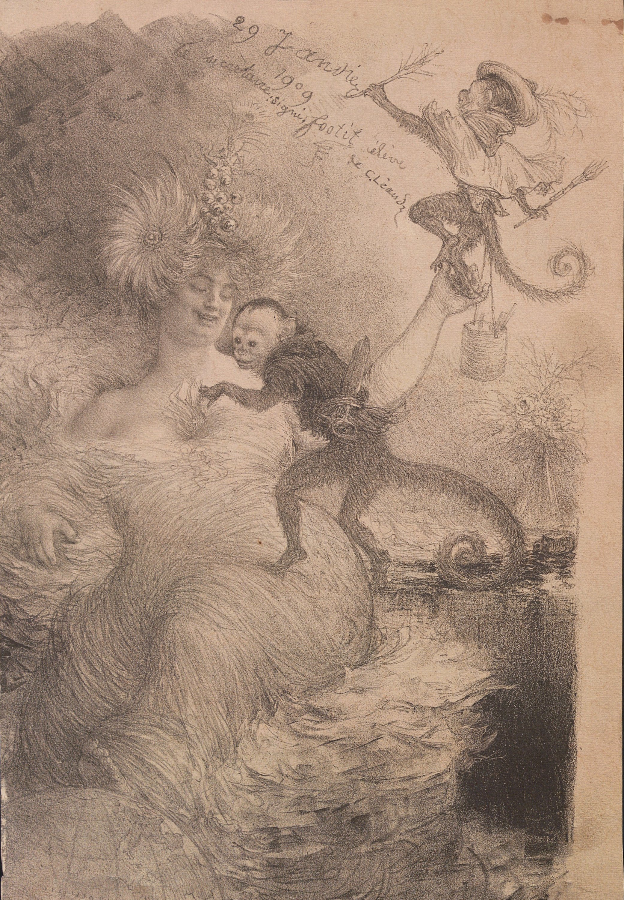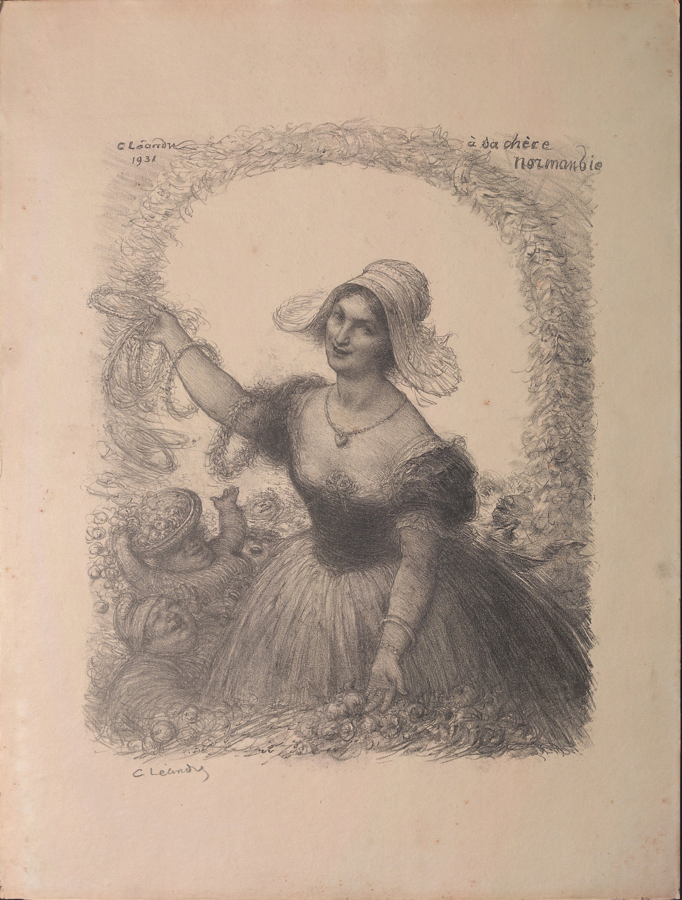 Joint: 3 lithographies: La femme aux deux singes, 31 x 21 cm ; A sa chère Normandie, contrecollée sur carton, 49 x 37,5 cm ; Arlequin, 48 x 33 cm.
