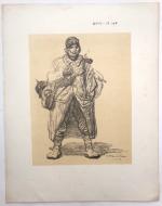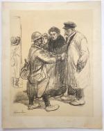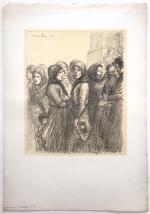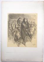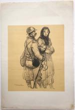 23 épreuves tirées sur fond ocre, dont 19 pl. portent la mention « épreuve d’artiste n°II » et 1 pl. signée au crayon par l’artiste: [Verdunois à la Gare de l'Est] ; [La Gloire] (en couleurs] ; [L’exode belge] ; [Les réfugiés de la Meuse] ; [L’allocation militaire] ; [Les convalescents] ; [Courageuse!] ; [Pour les fillettes des soldats tombés au champ d’honneur] ; [Un vieux de la vieille] ; [L’aide aux mutilés de guerre] ; [Sous la botte] ; [Le secours national] ; [Errant !] ; [Veuves d’un Louis] ; [Pour les familles dispersées] ; [Chiens errants] ; [Serbie. Sœur Anne de France ou d’Italie ne vois tu rien venir] ; [Calvaire serbe] ; [Deux poilus] ; [On ne s’en fait pas] ; [Bat d’Af] ; etc.