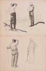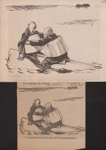Lot de 17 dessins de presse originaux, à l’encre, sur papier, en majorité signés, la plupart légendés au crayon, portant au dos cachet de la vente à la Galerie de Chartres du 23-10-2000, env. 25 x 31 cm.