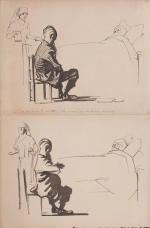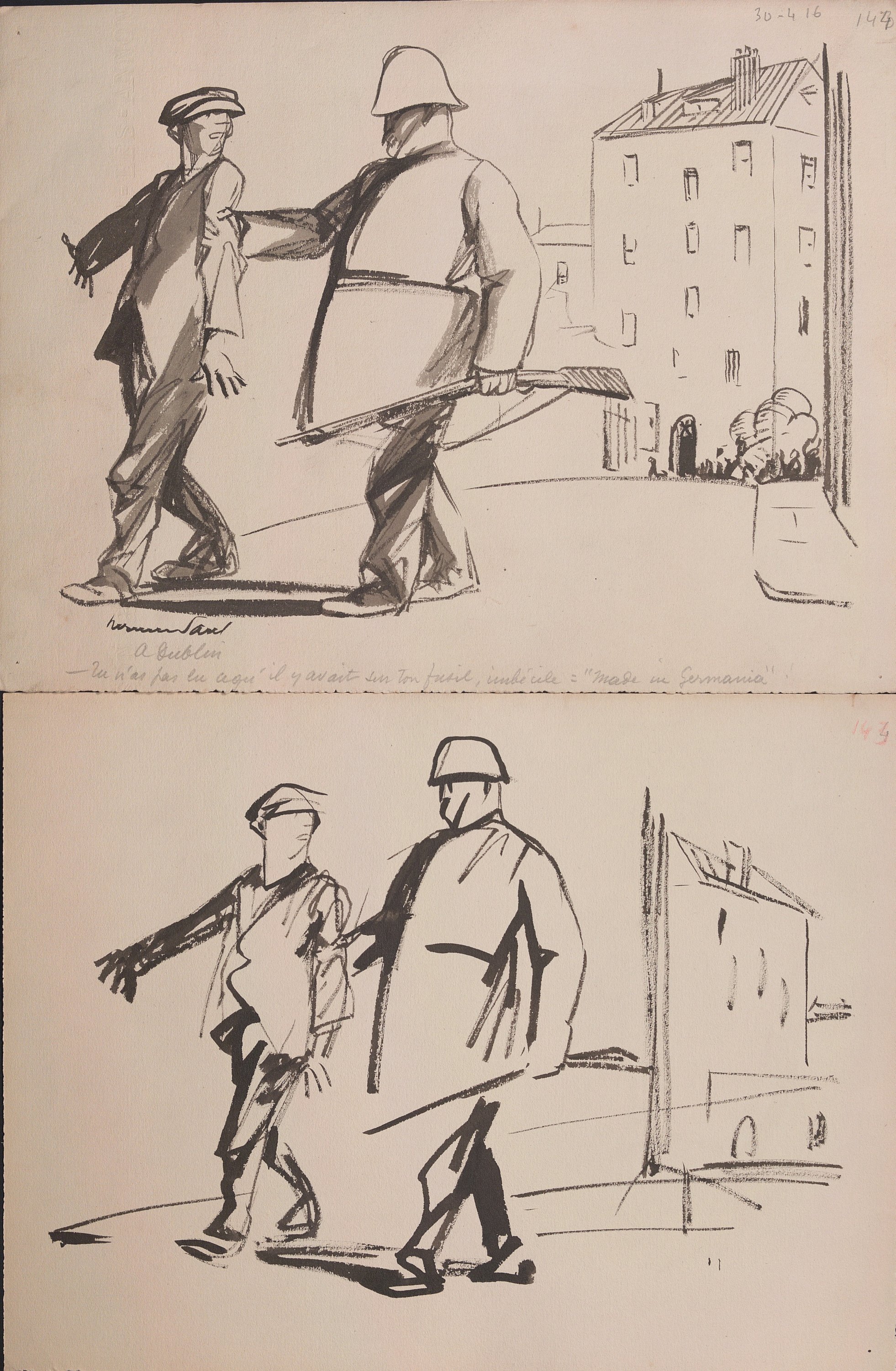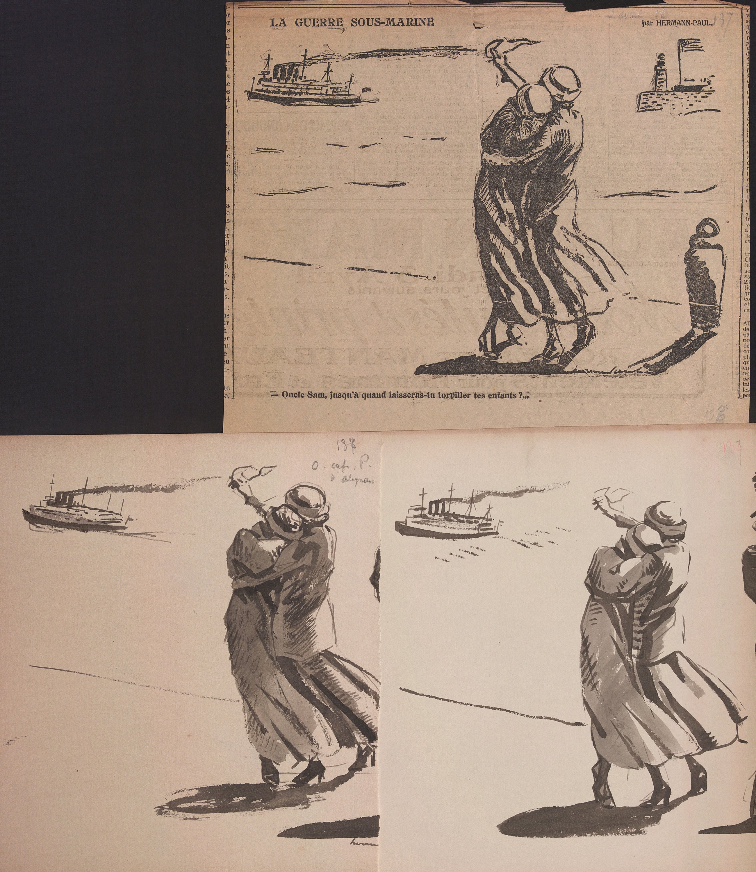 Il s’agit à la fois des ébauches, dessins préparatoires ou maquettes abouties en vue de leur publication dans la presse dont le journal « La Victoire - quotidien révisionniste: organe de la république autoritaire et plébiscitaire » sous la direction de Gustave Hervé paru à partir du 1er janvier 1916.