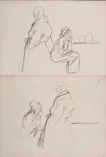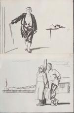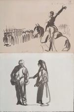Lot de 22 dessins de presse originaux, à l’encre, fusain et crayon, sur papier, portant au dos cachet de la vente à la Galerie de Chartres du 23-10-2000, env. 25 x 31 cm.