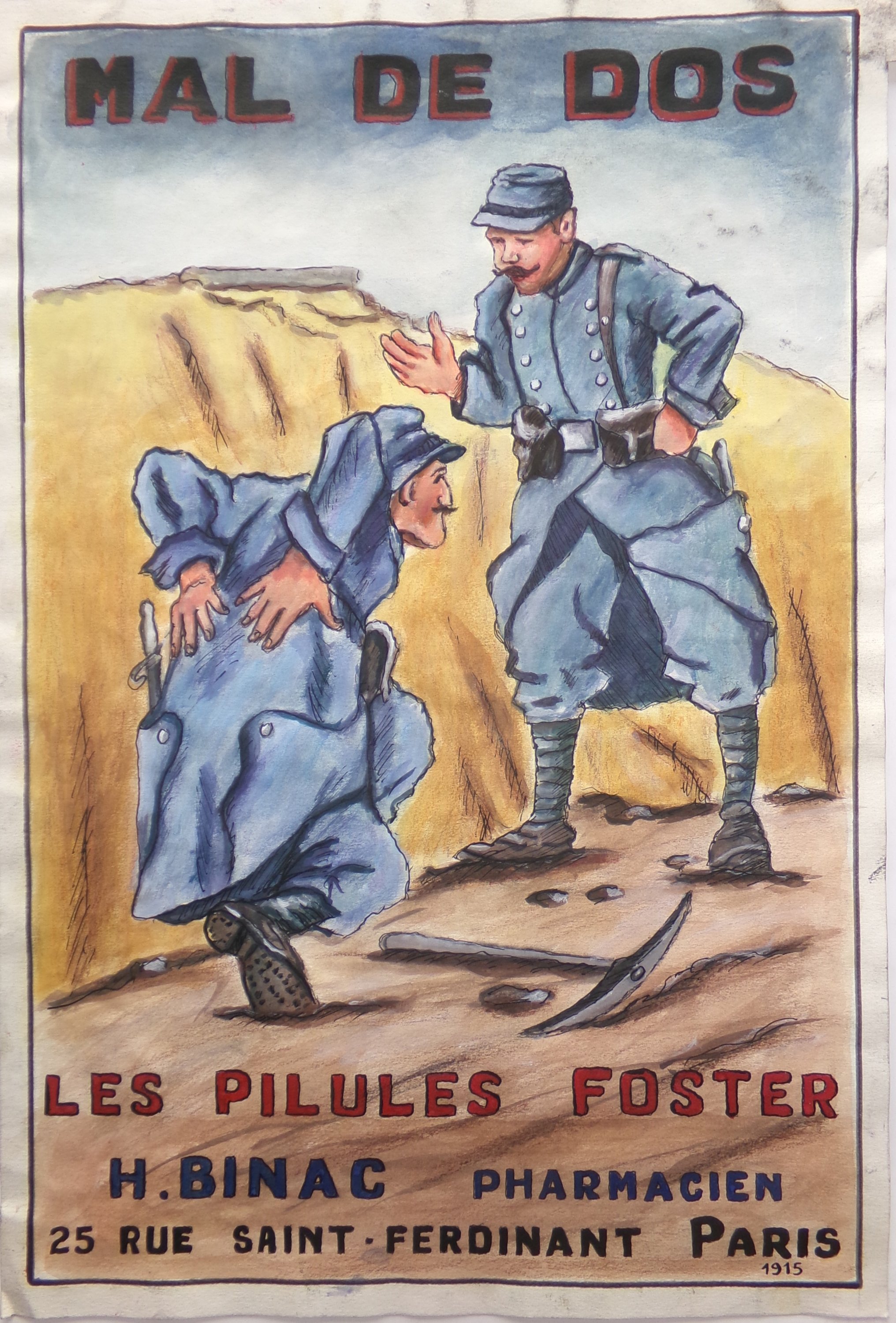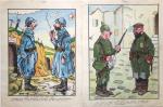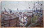 Dont 2 dessins, Combat de tranchée et Travaux forcés daté 1916 et signé en bas à droite Georges Scoté (1884-1971), fait prisonnier en Allemagne d’oct. 1914 à janv. 1919, 46,5 x 38,5 cm et 39 x 57 cm ; 2 scènes humoristiques, titrées et légendées, « Au repos » et « C’est le métier qui vaut ça! », dont un signé « P.D. », 32 x 24 cm ; etc.