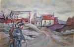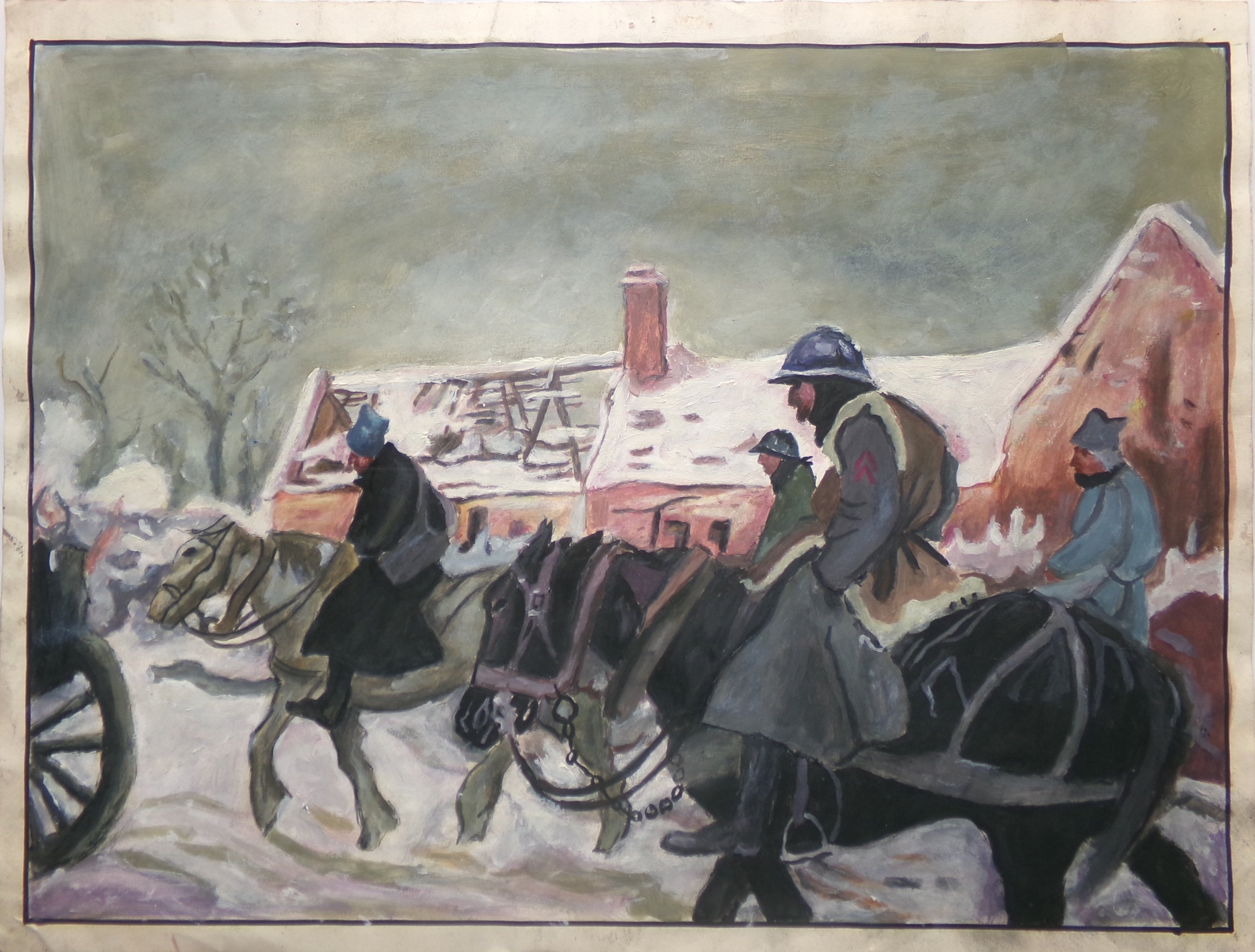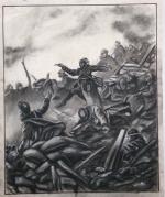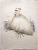 Lot de 10 dessins de poilus, formats divers, encre, fusain, aquarelle et gouache.