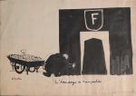 L’hommage de Crainquebille, encre et rehauts de gouache blanche, signé en bas à gauche, 22 x 31,5 cm ; dessin paru dans le journal Les Nouvelles littéraires artistiques et scientifiques du 18 octobre 1924, dans un numéro spécial rendant hommage à Anatole France, décédé le 12 octobre 1924.