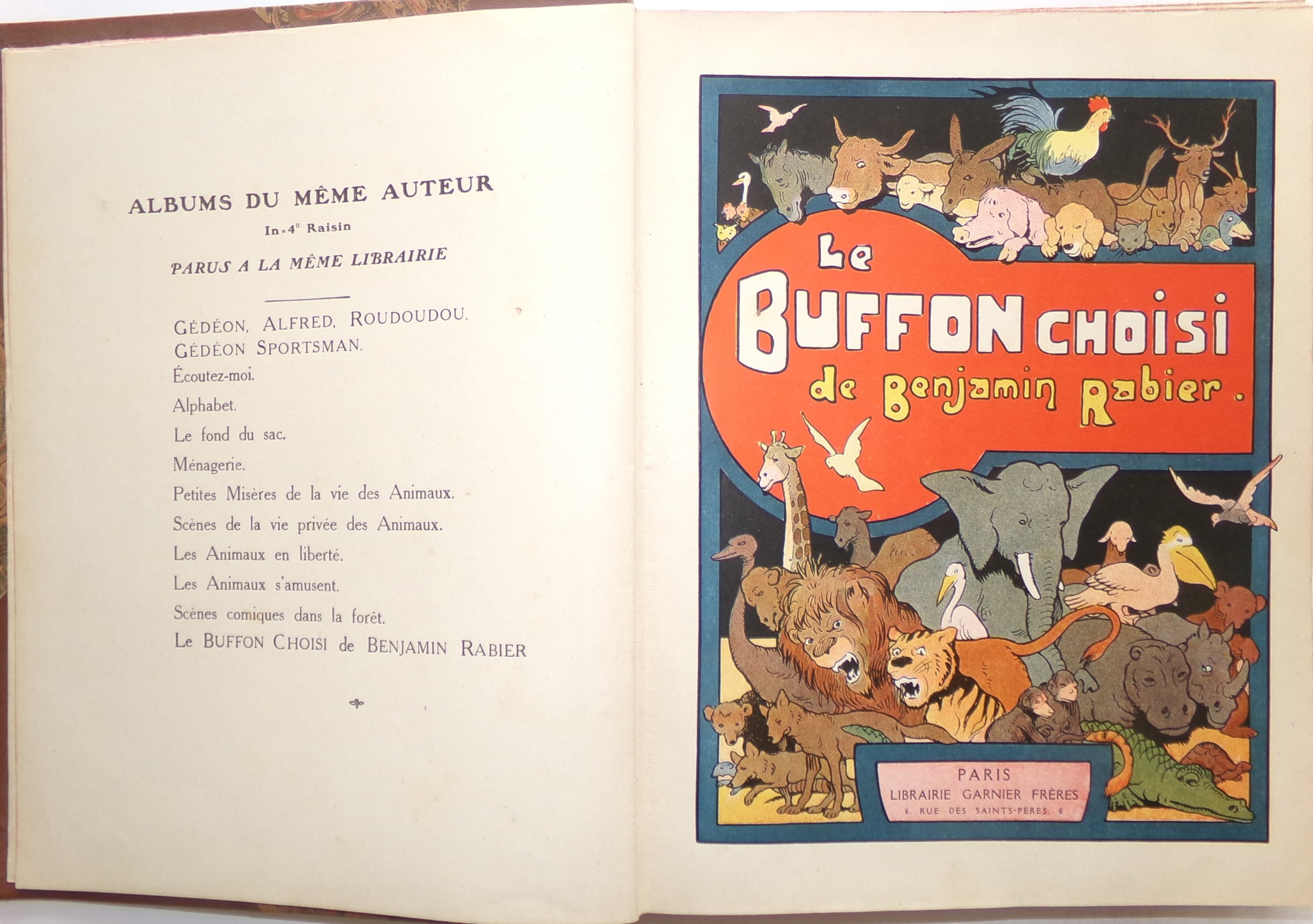 Benjamin Rabier,?Le Buffon choisi de Benjamin Rabier. Paris, Garnier frères, 1924.In-4 rel. ½ percaline, 267 pp. Illustrations dans le texte et 31 pl. h. t. en couleurs comprises dans la pagination ;