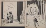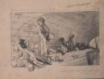 Julien Lagrange dit Th. Barn (Orléans, 1876-1939), Les désespérés, encre et aquarelle, signé, avec dédicace et légende à la plume: « Voilà deux fois que je me rate parce que le train déraille. En me mettant à côté de la voie, j’ai un peu plus de chances de me réussir », 39,5 x 30,5 cm ;
