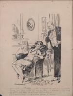 Henri Armengol, encre, signé, légendé « Vraiment ma chère votre indifférence est inexplicable. Tenez pas plus tard qu’hier Berthe me disait: Tu sais! je ferais très bien de toi mes dimanches! » - Ses dimanches et autres jours de repos », 30 x 23,5 cm ;