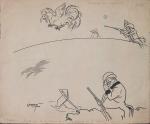 Jean Fressinet (1889-1972), fusain et aquarelle, signé, 29 x 14 cm ;