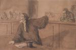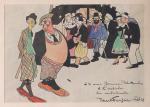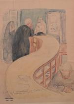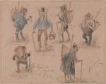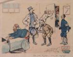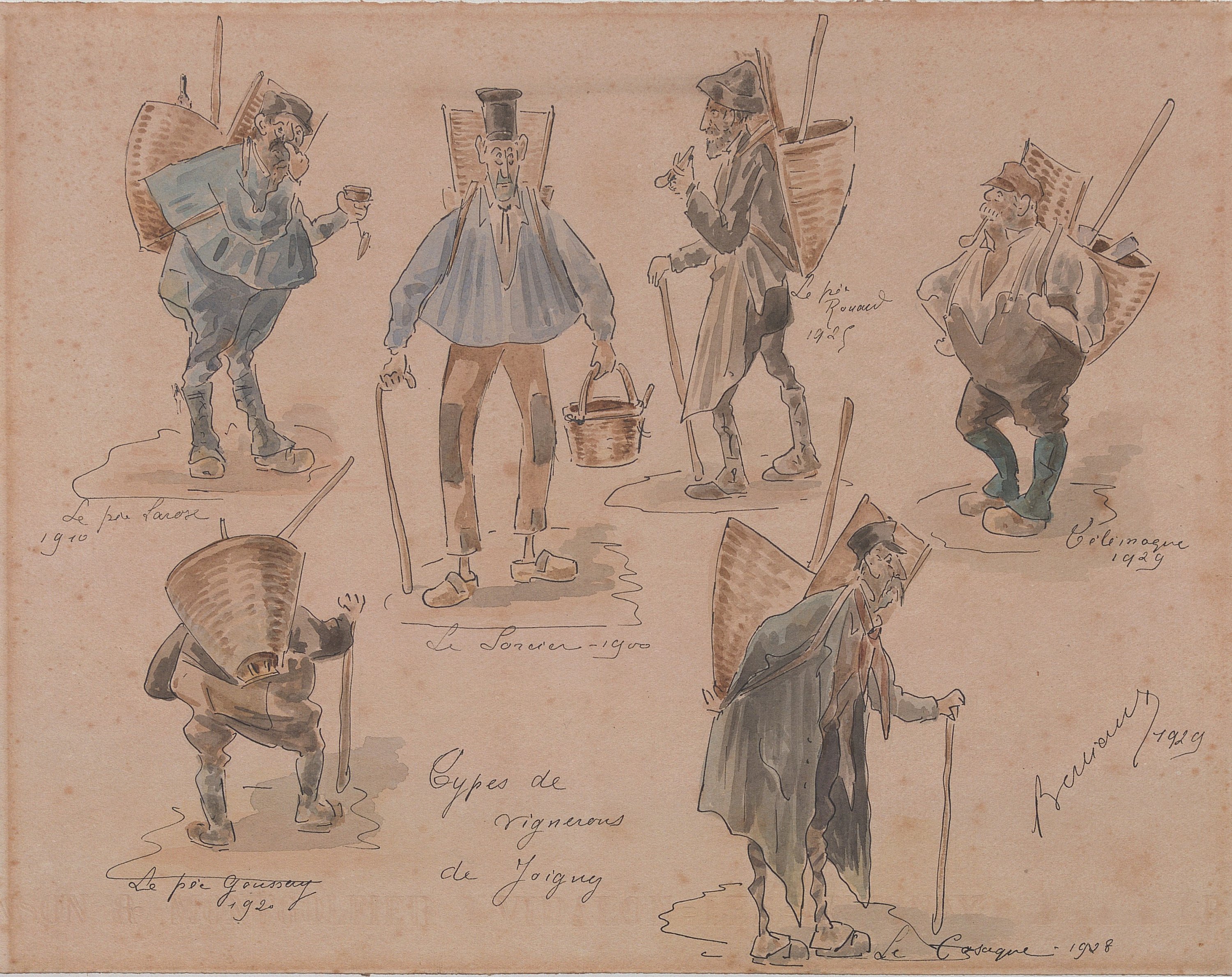 3 dessins signés et 1 estampe à identifier dont: Un cas rare chez un kabyle, encre et aquarelle, 21,5 x 27,5 cm ; Types de vignerons de Joigny, contrecollé sur carton, 25 x 31,5 cm.