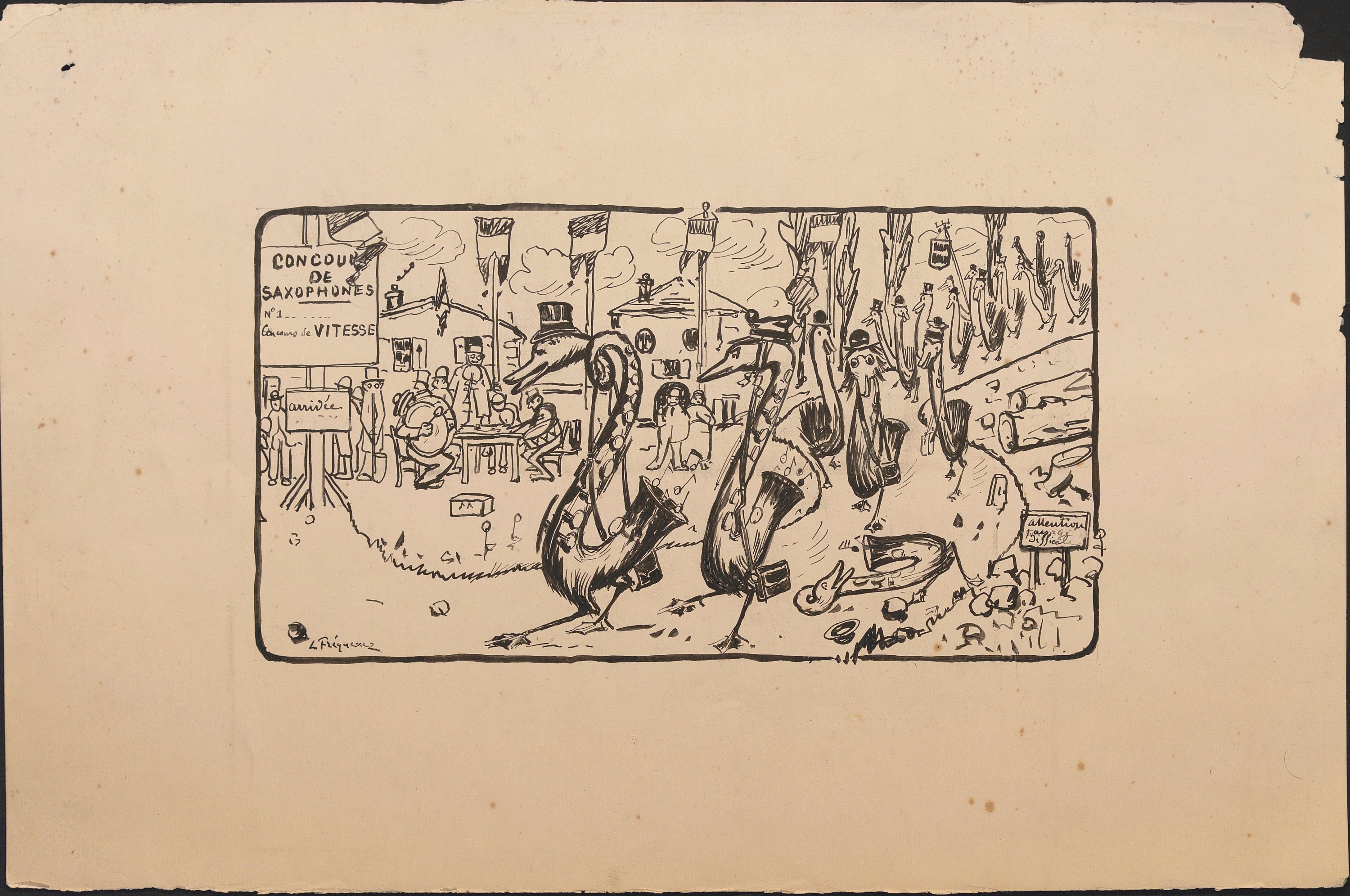 Paul Léon Fréquenez (1876-1943), Concours de saxophones, encre,...