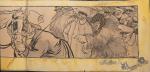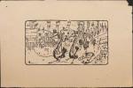 Estampe sur le thème de l’automobile, cachet « Moderne estampe, Paris, 62 rue de Provence », 73 x 126 cm (en l’état, plis, tâches).
