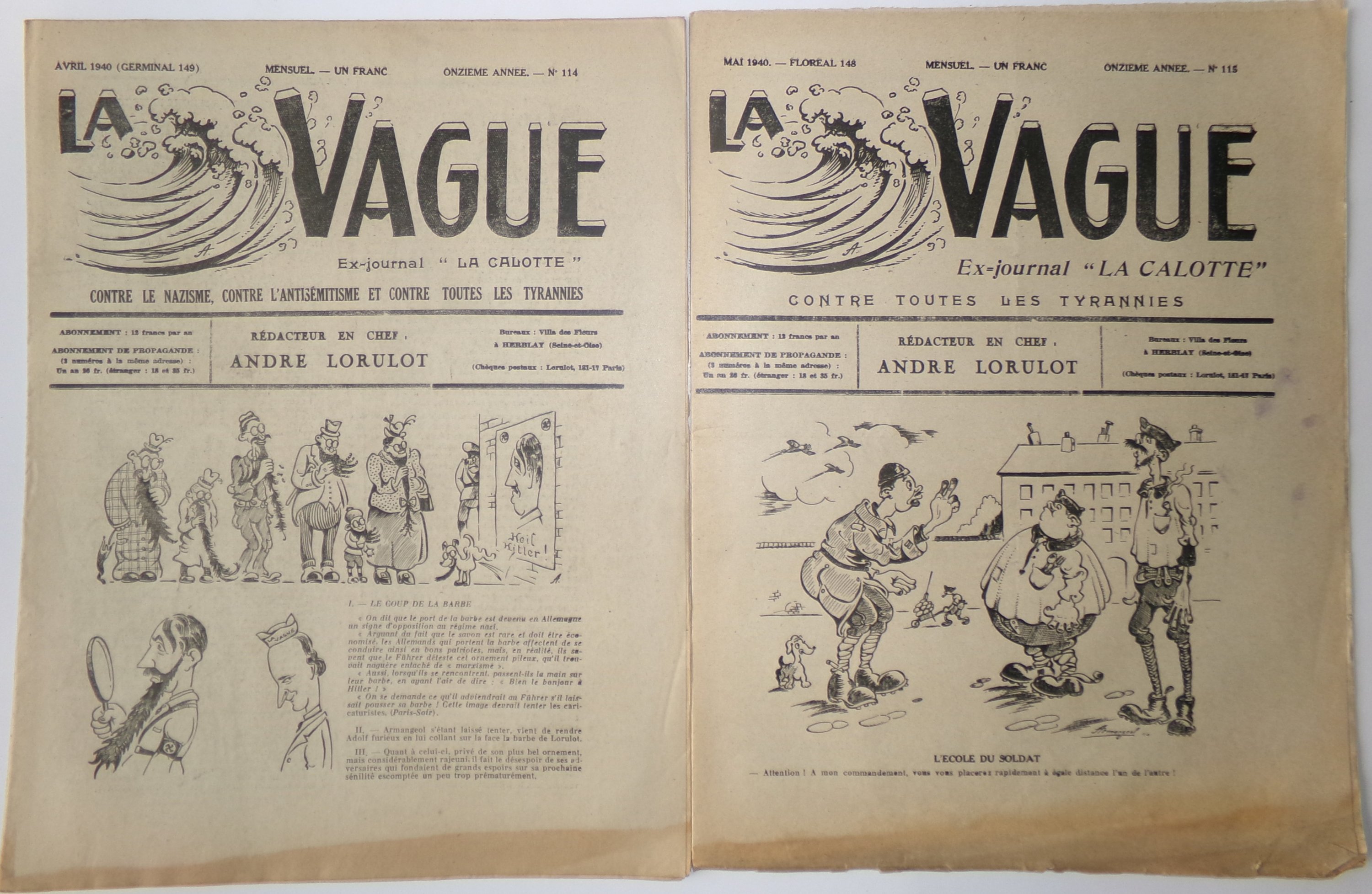 Le militant libertaire et libre penseur André Lorulot reprend ce titre dans les années 1930. Pendant la guerre 1939-1945, La Calotte change de titre pour La Vague, toujours sous la direction de Lorulot, qui stigmatise les liens entre l'Eglise catholique et le fascisme et y dénonce l’antisémitisme. Après la guerre, La Calotte devient l'organe de la libre-pensée.