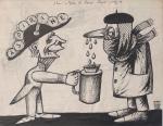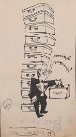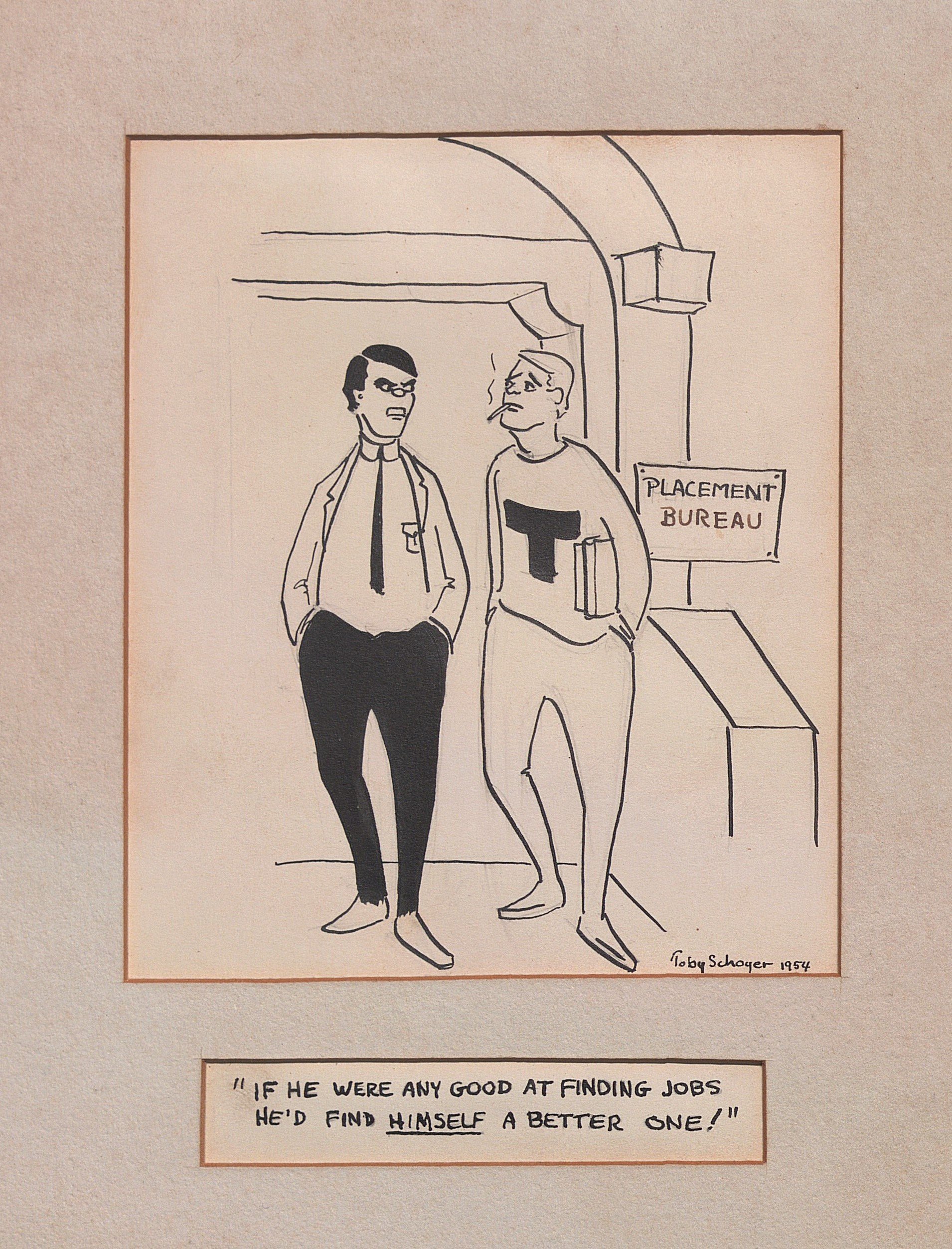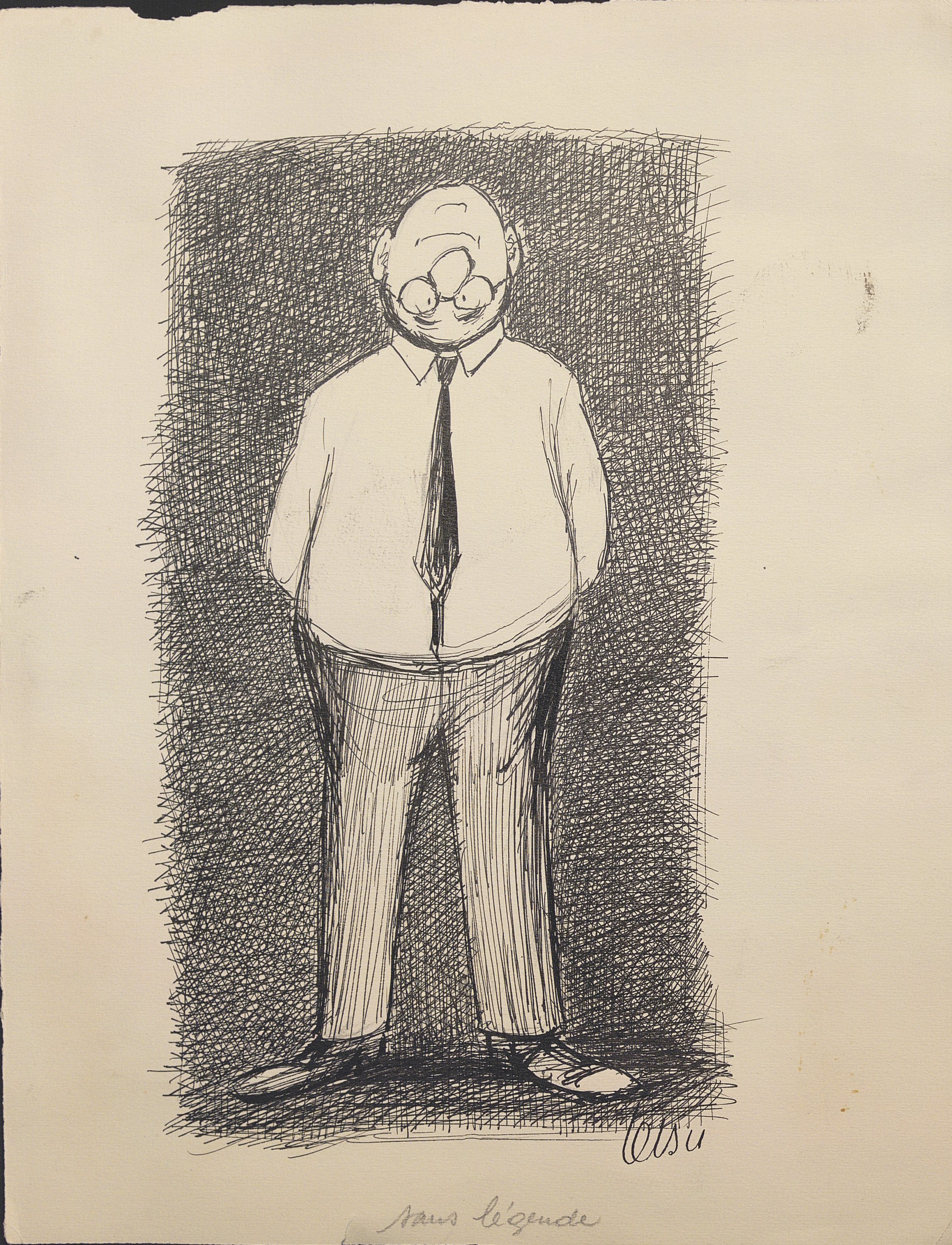 Toby Schoyer, sans titre, encre, signé en bas à droite et daté 1954, légendé en anglais, 21 x 15 cm ;