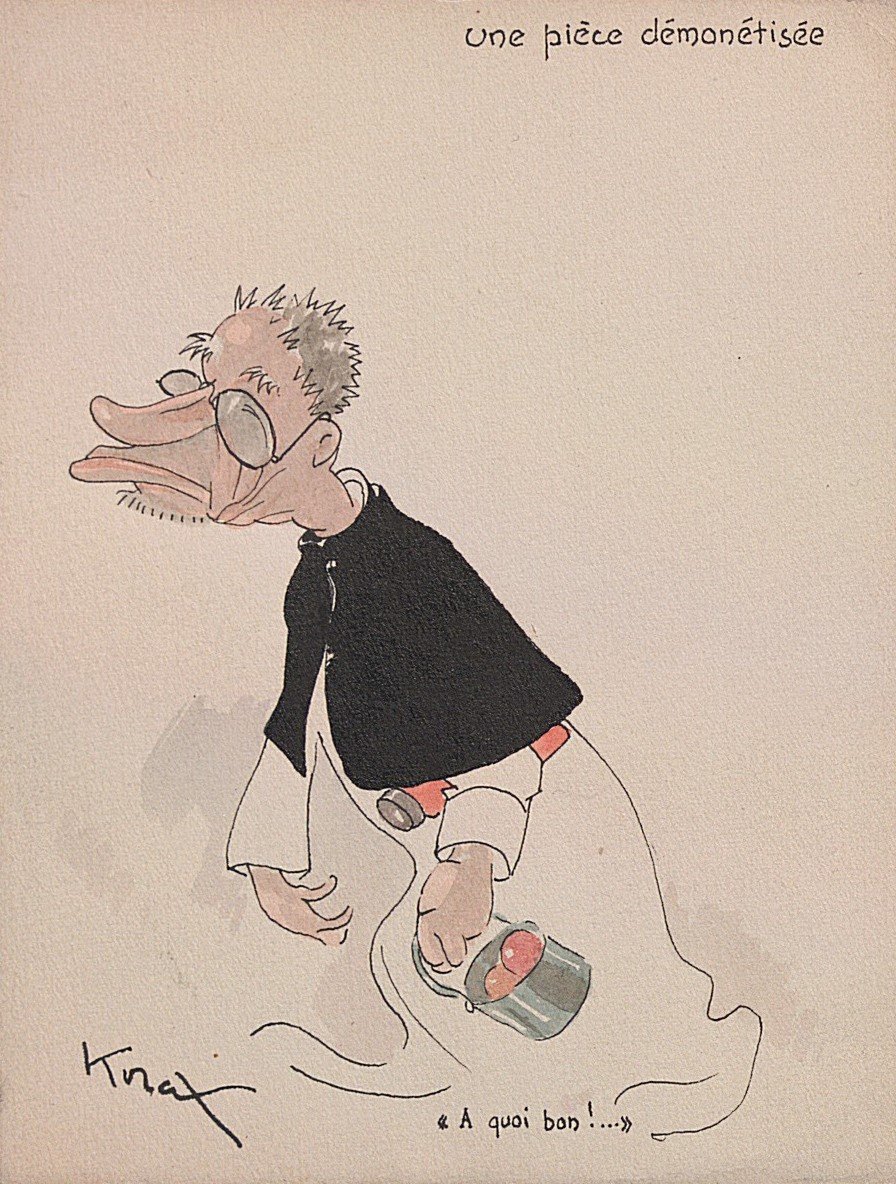 Krax ou Korax, Une pièce démonétisée, encre et aquarelle, 16,5 x 12,5 cm ;