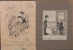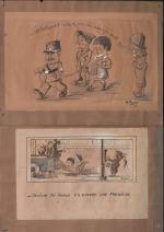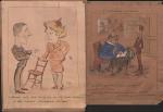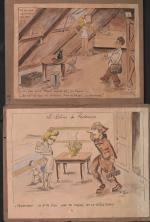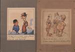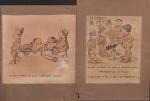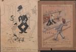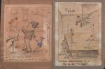Plume, encre, aquarelle et gouache, sur papier, en majorité contrecollés sur papier épais, formats divers (env. 32 x 25 cm pour les plus grands)