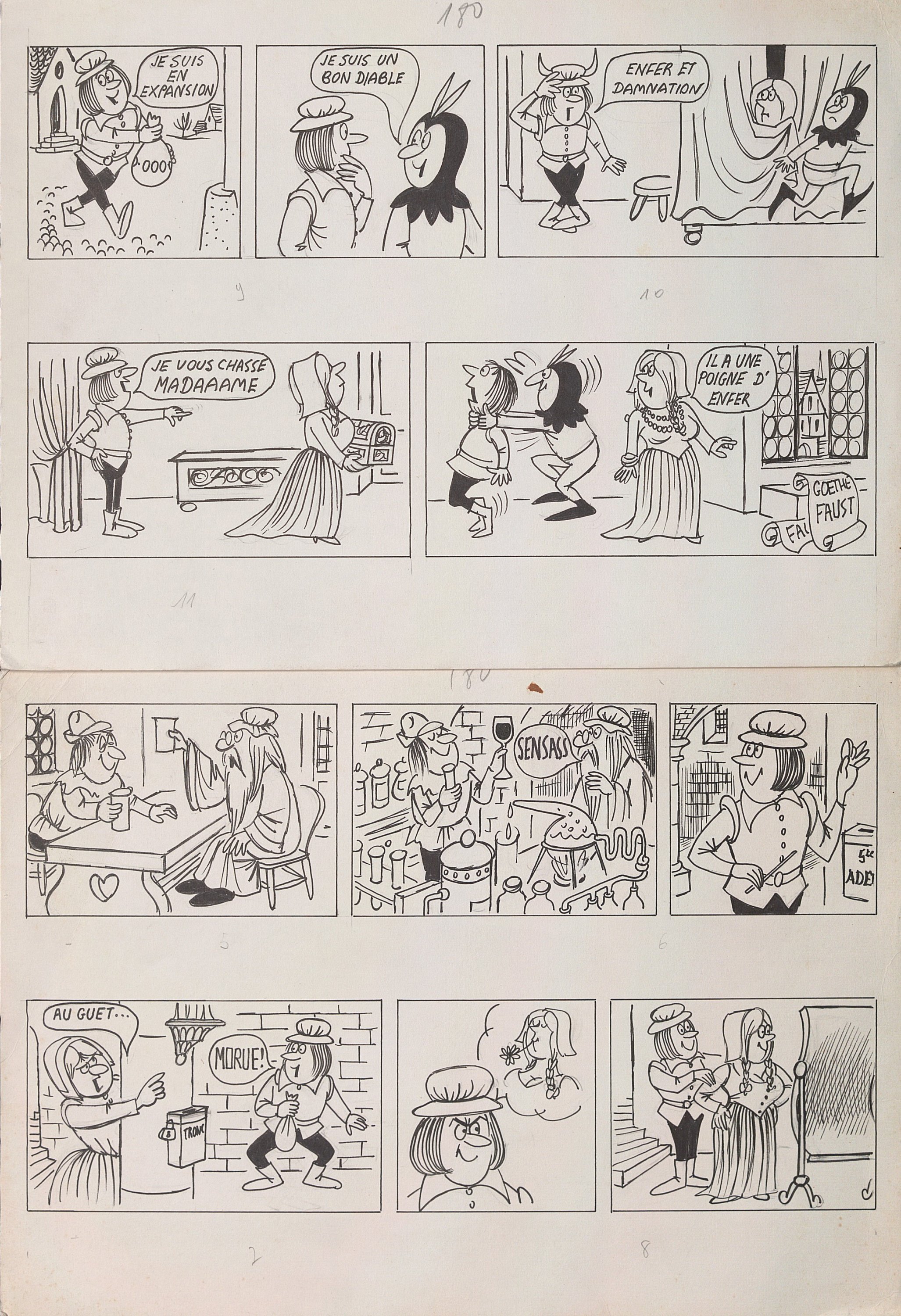 Faust et Marguerite, 3 planches de strips, encre, texte de Bernard Frangin, 24 x 32 cm ;