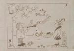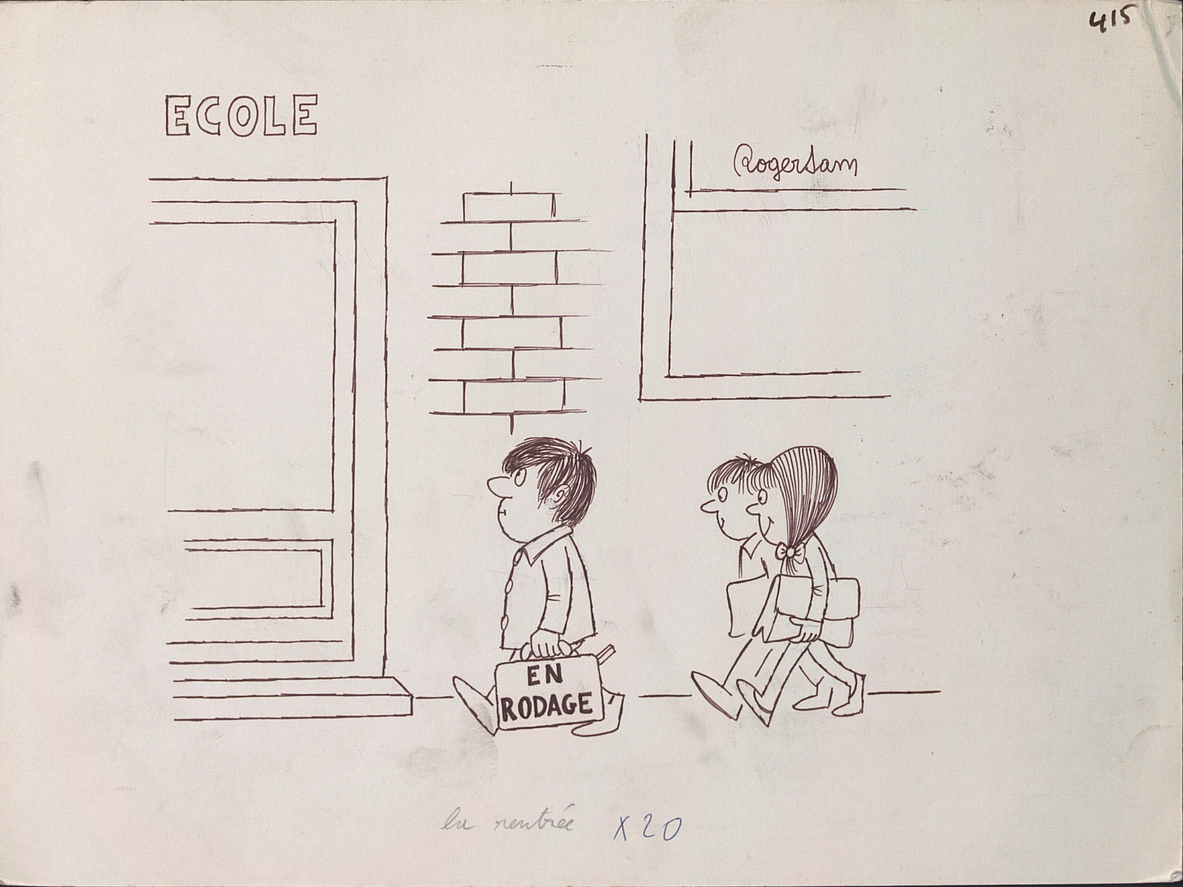 La rentrée, encre, titré, signé en haut à droite, 24 x 32 cm ;