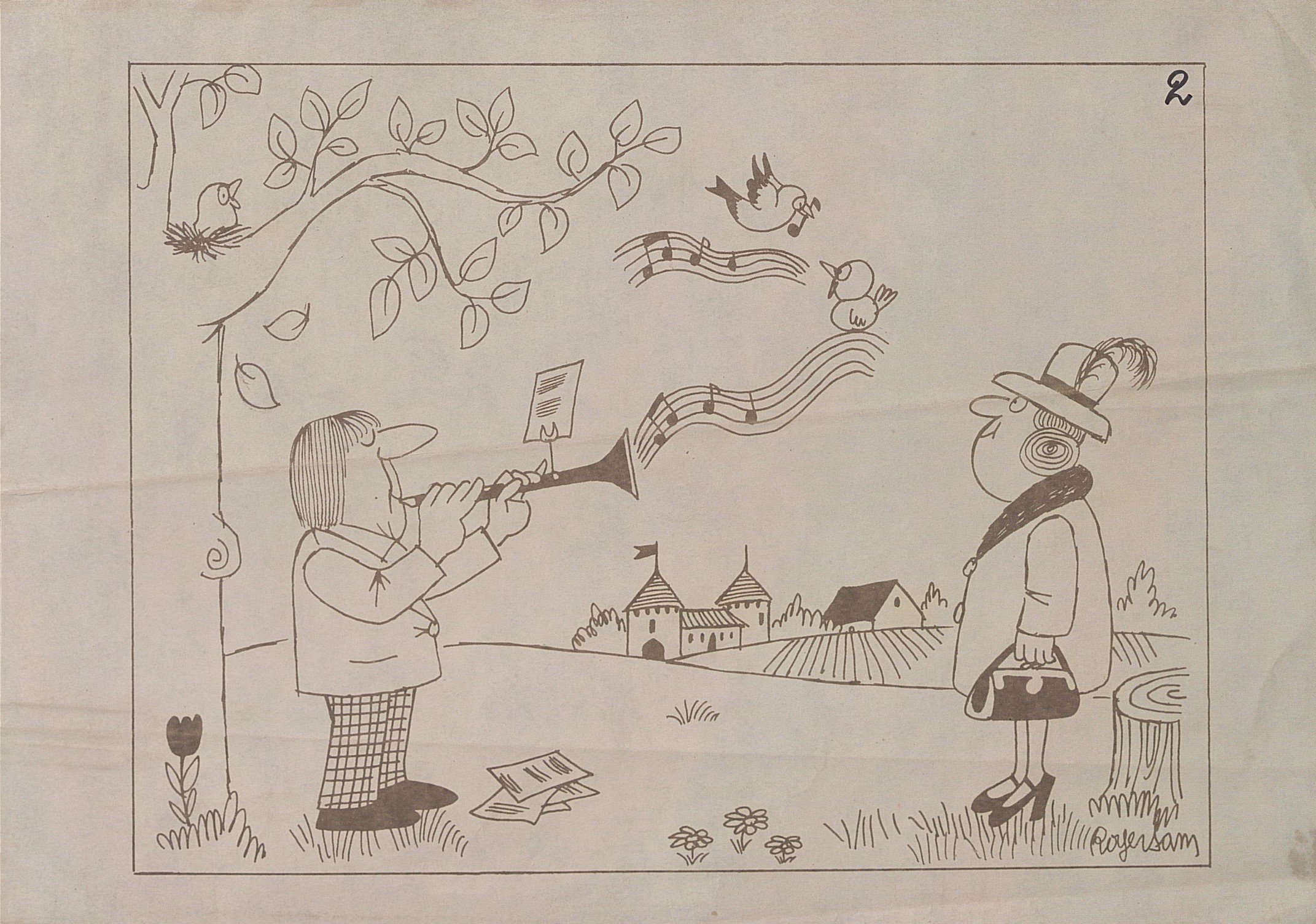 Originaire de la région lyonnaise, Roger Sam monte à Paris en 1946 et commence à travailler avec des dessins politiques pour la revue Concorde, mais les temps sont difficiles. Au lendemain de son mariage avec la soeur de l’écrivain Frédéric Dard, il trouve un débouché dans le dessin humoristique, collaborant à une cinquantaine de titres de presse et dirige Eclats de Rire de 1950 jusqu’à sa mort. En 1955, Roger Sam participe à Comique Magazine sous la même forme que Cent Blagues. Puis ce sera les édition EGE près de Saint-Etienne où ses dessins paraitrons dans les revues Sexy-Blagues, A la blague, Eclats de rire, Sexy-Humour, Histoires sexy et Cie, etc...toujours avec une certaine poésie. Il illustre plusieurs livres, dont deux San Antonio de Frédéric Dard, son beau-frère.