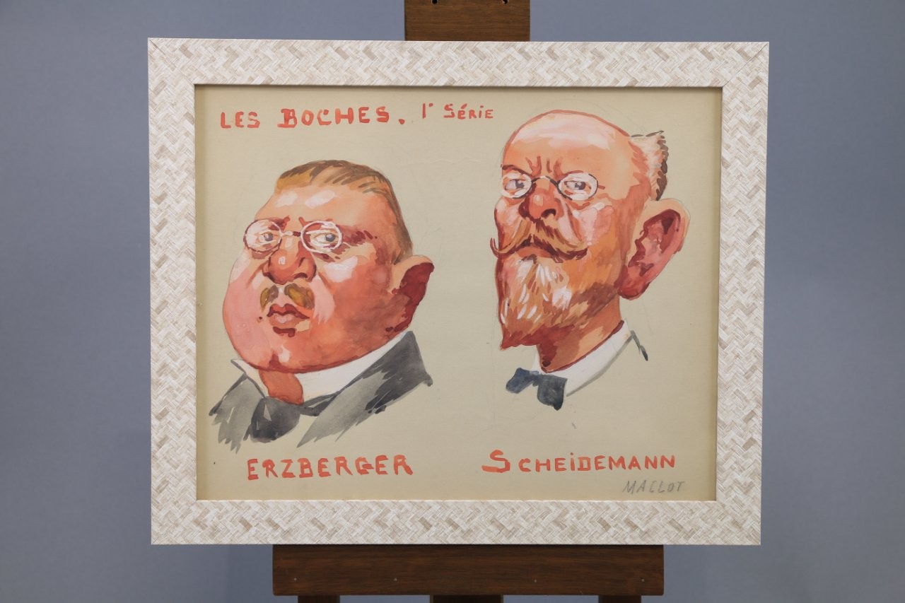 14 portraits aquarellés et gouachés sur papier, légendés dont Hindenburg, Louis de Bavière, Zeppelin, Ludendorf, etc.