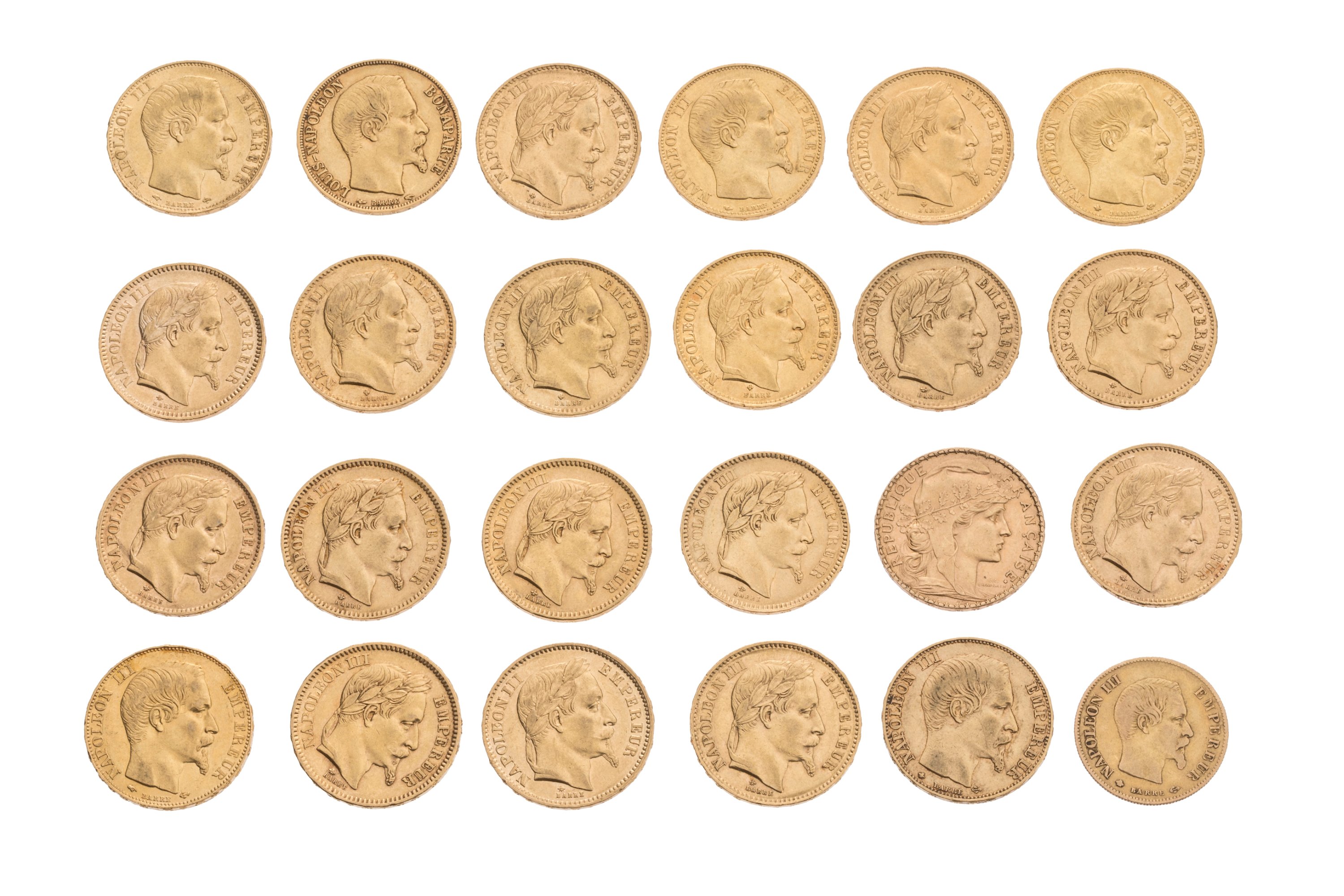 - 16 pièces de 20 francs Napoléon III tête laurée, 1864 (2), 1865 (1), 1866 (4), 1867 (3), 1868 (3), 1869 (2), 1870 (1)