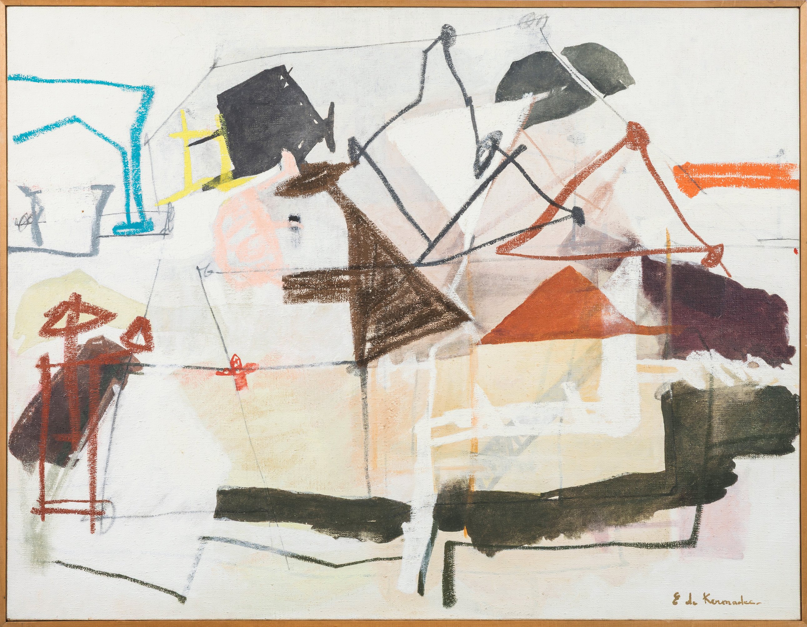 Eugène de Kermadec. A 1966 painting entitled "En forme de village maritime" (In the shape of a seaside village). Oil on canvas. Signed.