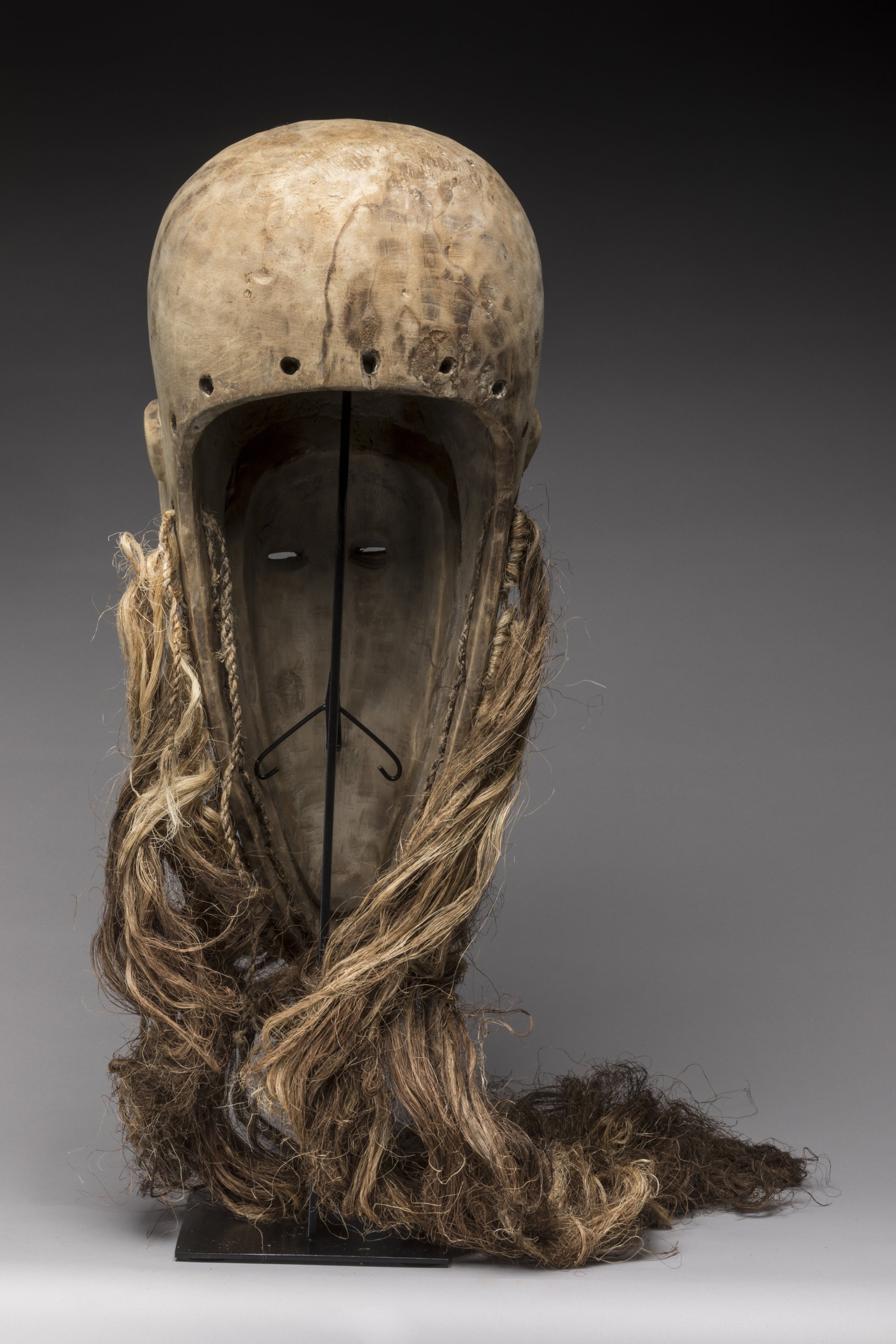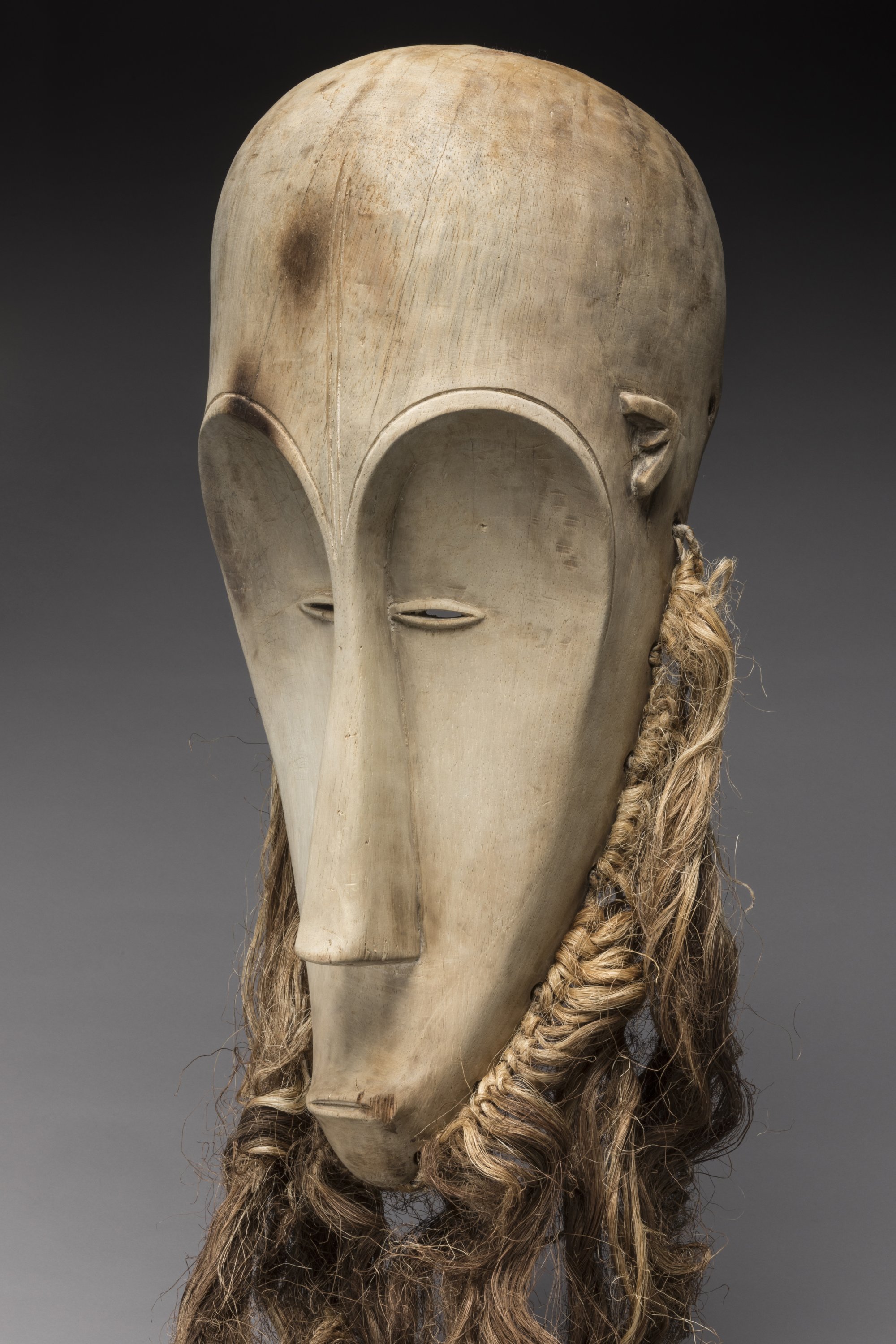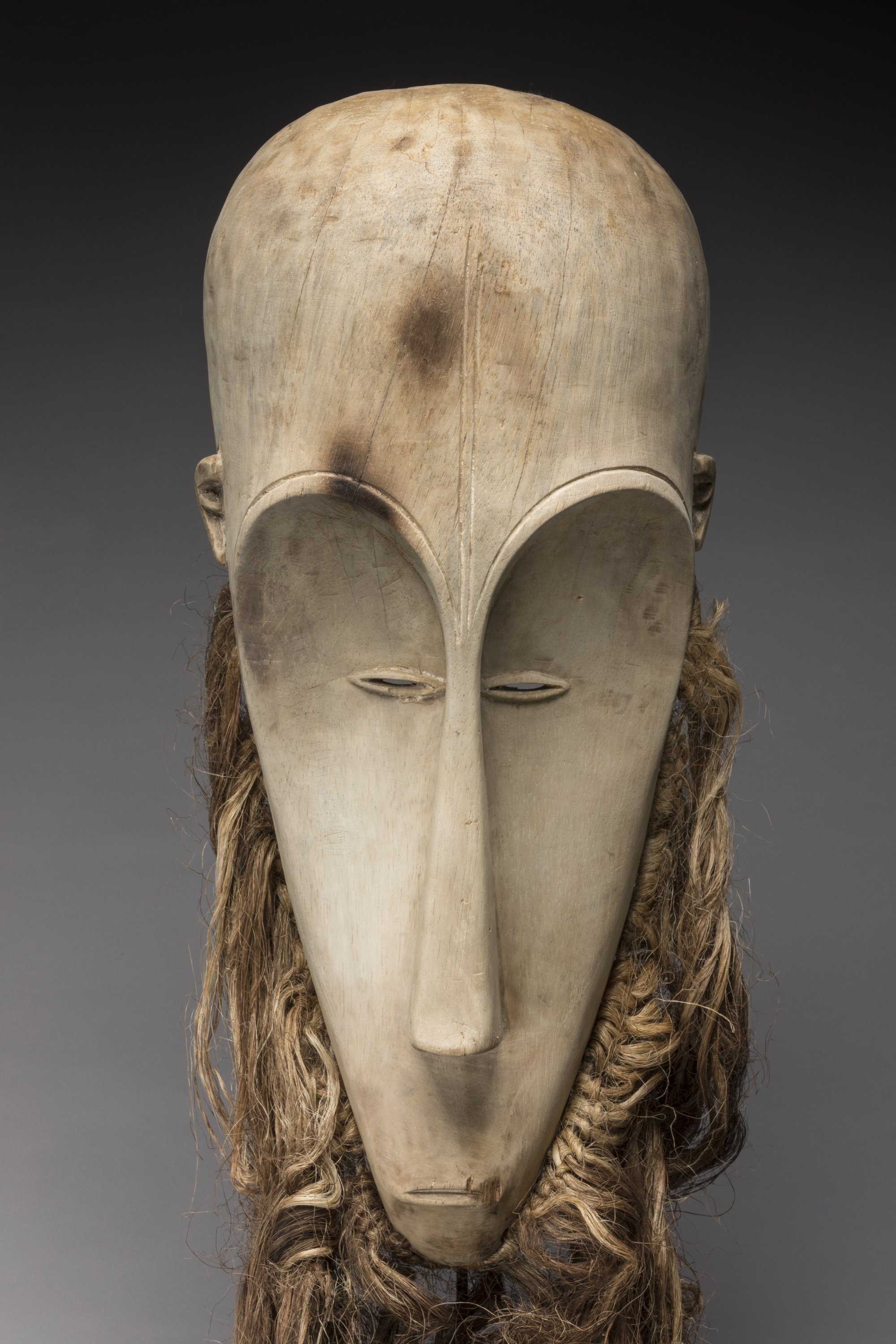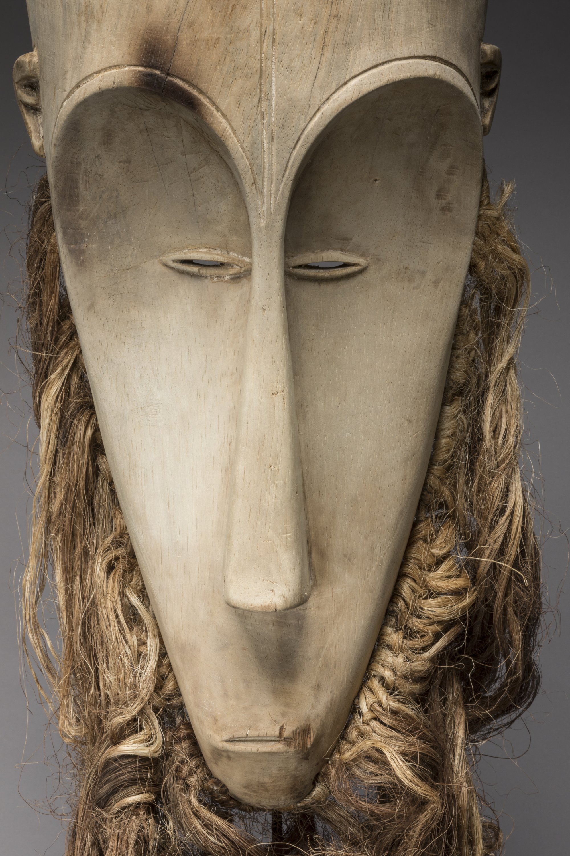 Ce masque Fang est associé à la société secrète judiciaire Ngil, autrefois active dans les forêts équatoriales du Gabon. Apparue à la tombée de la nuit, cette société menait des enquêtes contre la sorcellerie. Ses membres portaient de grands masques oblongs recouverts de kaolin blanc, aux orifices oculaires symbolisés par deux petites fentes et sans ouverture buccale, pour préserver l’anonymat des voix et des visages. Les scarifications stylisées et les formes géométriques de ces masques marquèrent profondément les artistes du XXe siècle, au premier rang desquels Picasso, fasciné par le masque Fang de la collection Derain, aujourd’hui conservé au centre Pompidou (AM 1982-248). Seule une douzaine d’exemplaires similaires serait répertoriée, tant dans les collections publiques - musées du quai Branly (71.1965.104.1), Dapper (2657), de Berlin (IIIC6000) et de Denver (1942.0443) - que provenant d'anciennes collections privées - Witthofs (Bruxelles), Vérité (Paris), Fournier (Montpellier) Celui-ci, récemment découvert dans une collection française, partage le même bois que le masque du quai Branly. Il se distingue par la pureté de ses traits, son immense front bombé et la force de son dessin. Lavé de son kaolin dans des circonstances inconnues, il a été complété de fibres de raphia dans la seconde moitié du XXe siècle. Dépourvu de provenance documentée, il est symboliquement livré aux enchères pour ce qu’il est: l’expression puissante d’un art africain majeur qui a bouleversé la création artistique mondiale au XXe siècle.