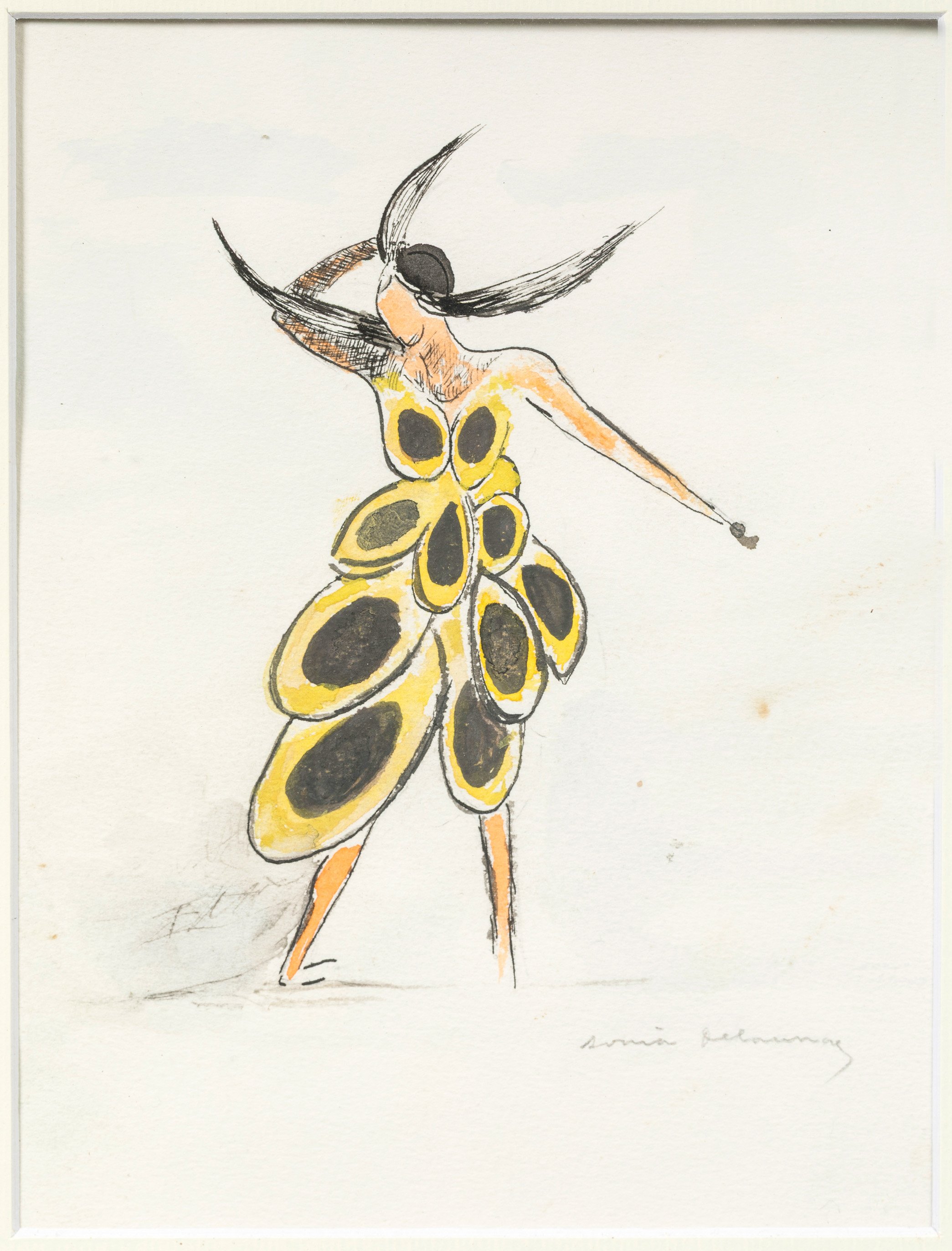 Sonia Delaunay. A ca. 1918 watercolor and ink drawing depicting a Petit Casino dancer. Signed.