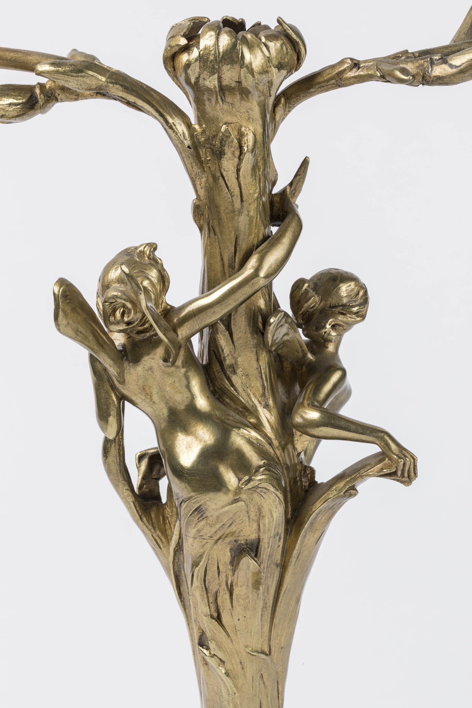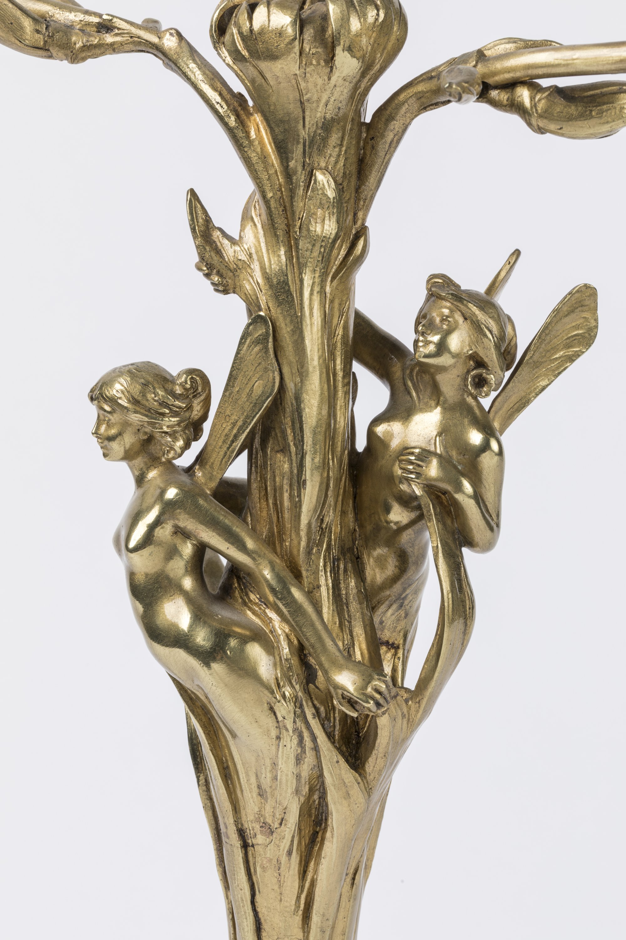 A fairy-decorated gilted bronze lamp. Art Nouveau Period.