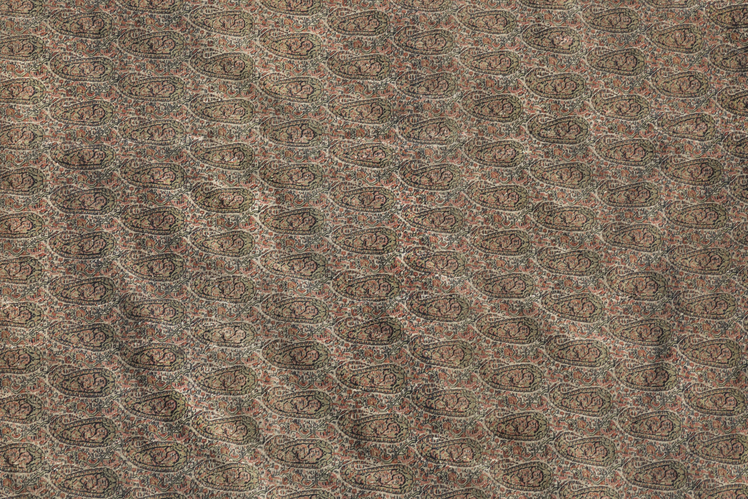 Décor de palmes mille fleurs, bordure de rinceaux de fleurs avec une inscription islamique: "commandité par son excellence, le noble, proche du sultan, le juste Naser al-Molk (?) en l’an 1301 (de l’Hégire)".