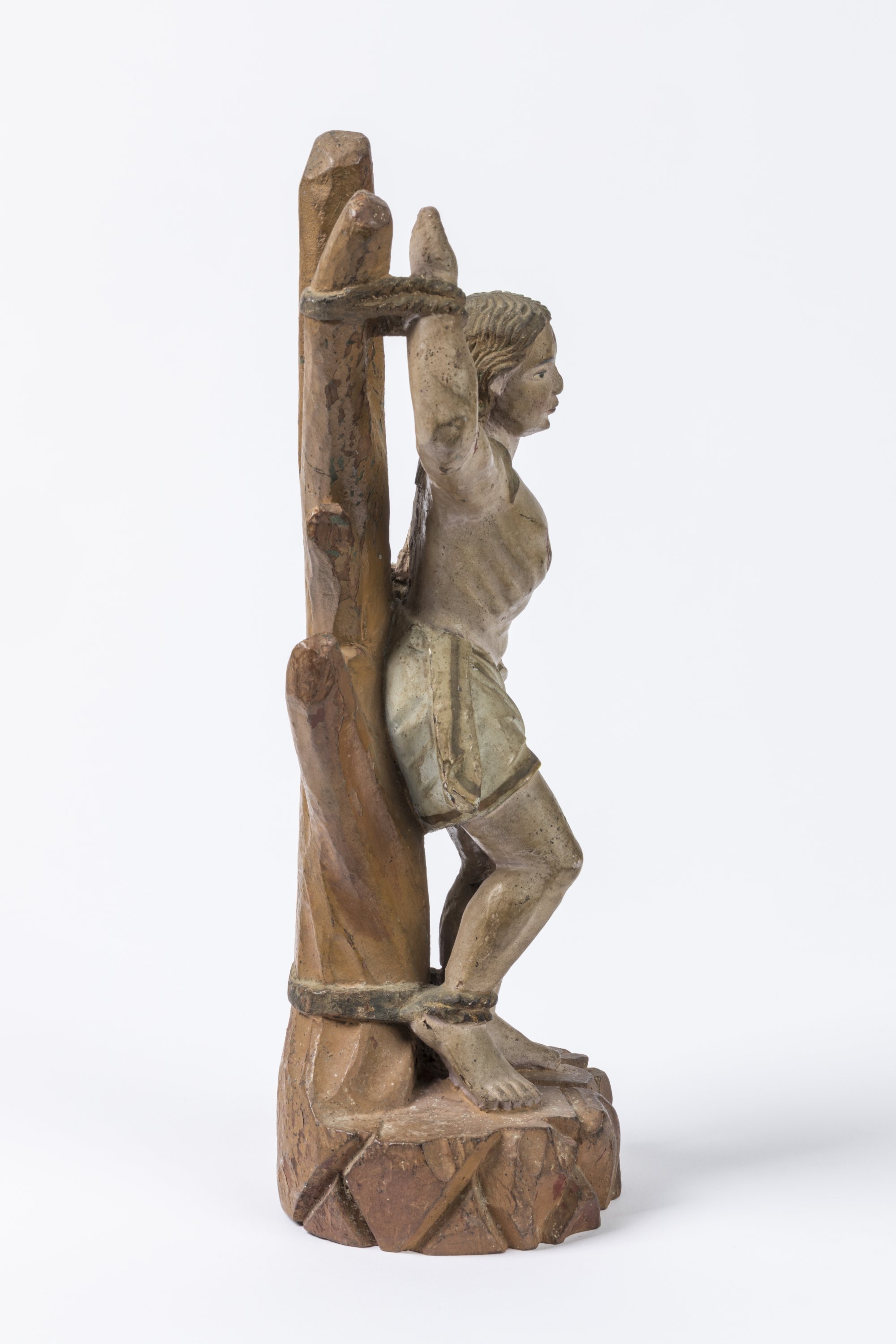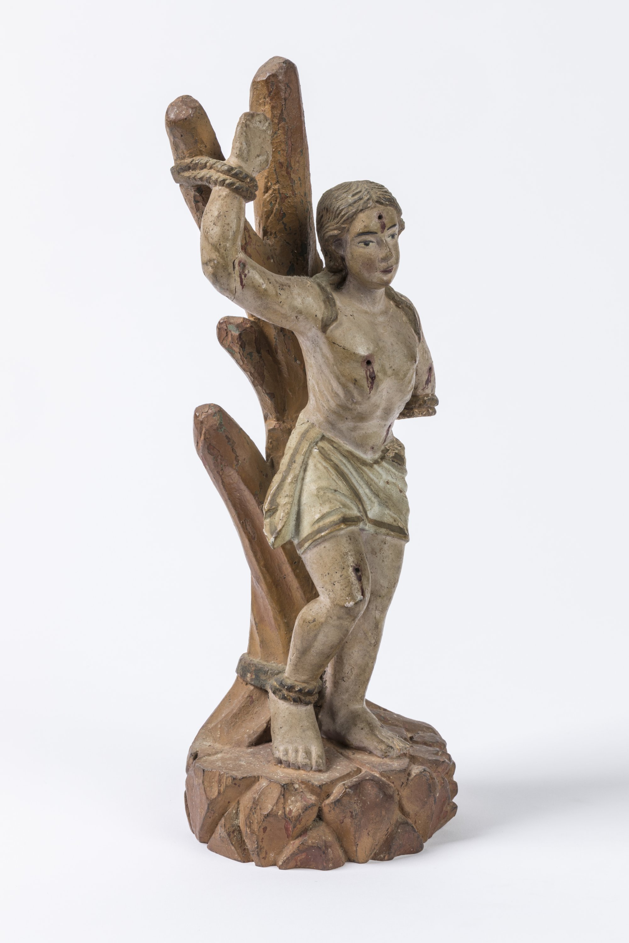 A polychrome and gilt wood figure of Saint Sebastian. Indo-Portuguese school, 18th century.