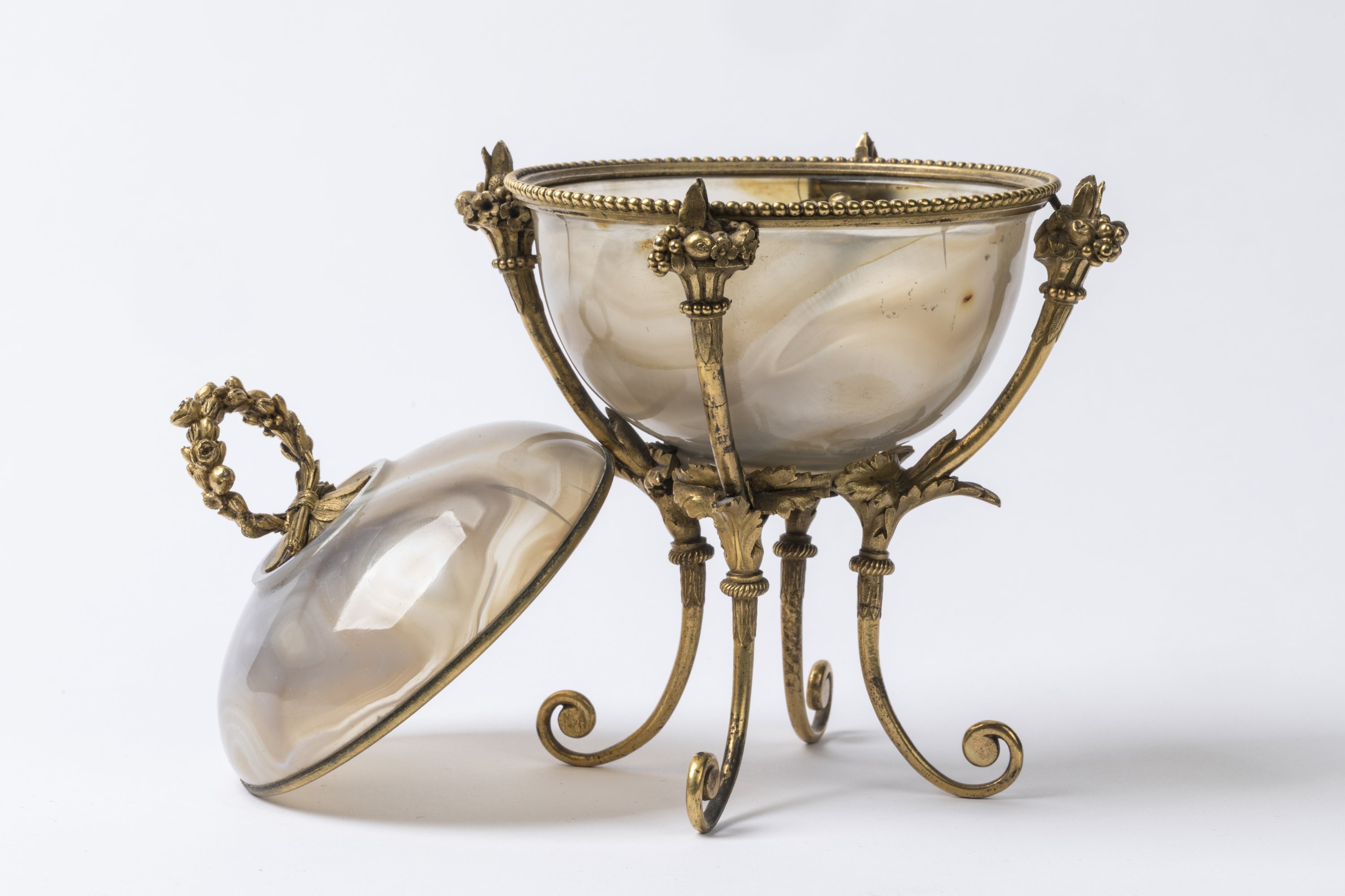 An agate and bronze candy dish. Louis XVI style, mid-19th century.