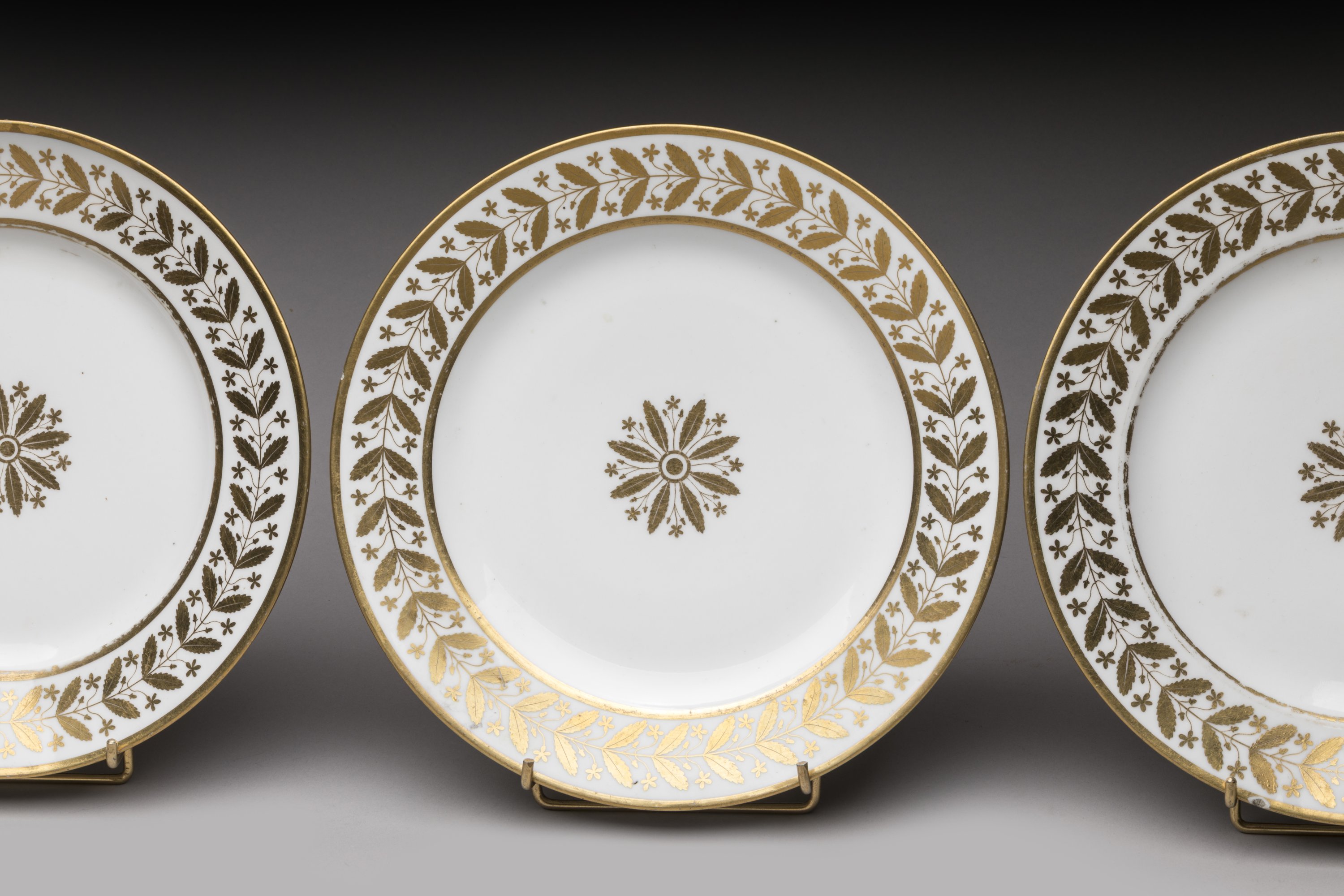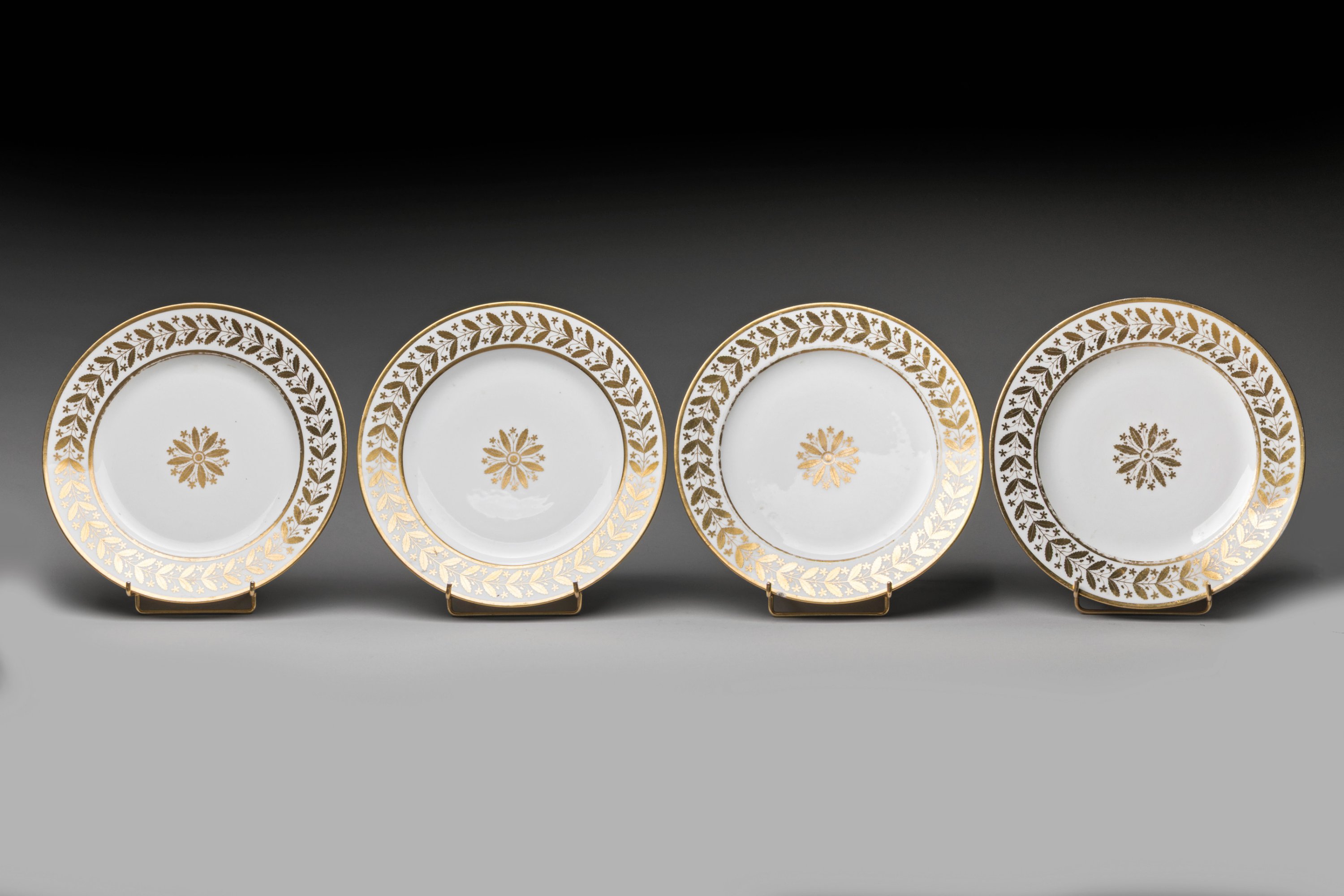 The Imperial Manufacture in Sèvres. An 1808 set of four plates for Emperor Napoleon I's personal service in Rambouillet. Empire Period.