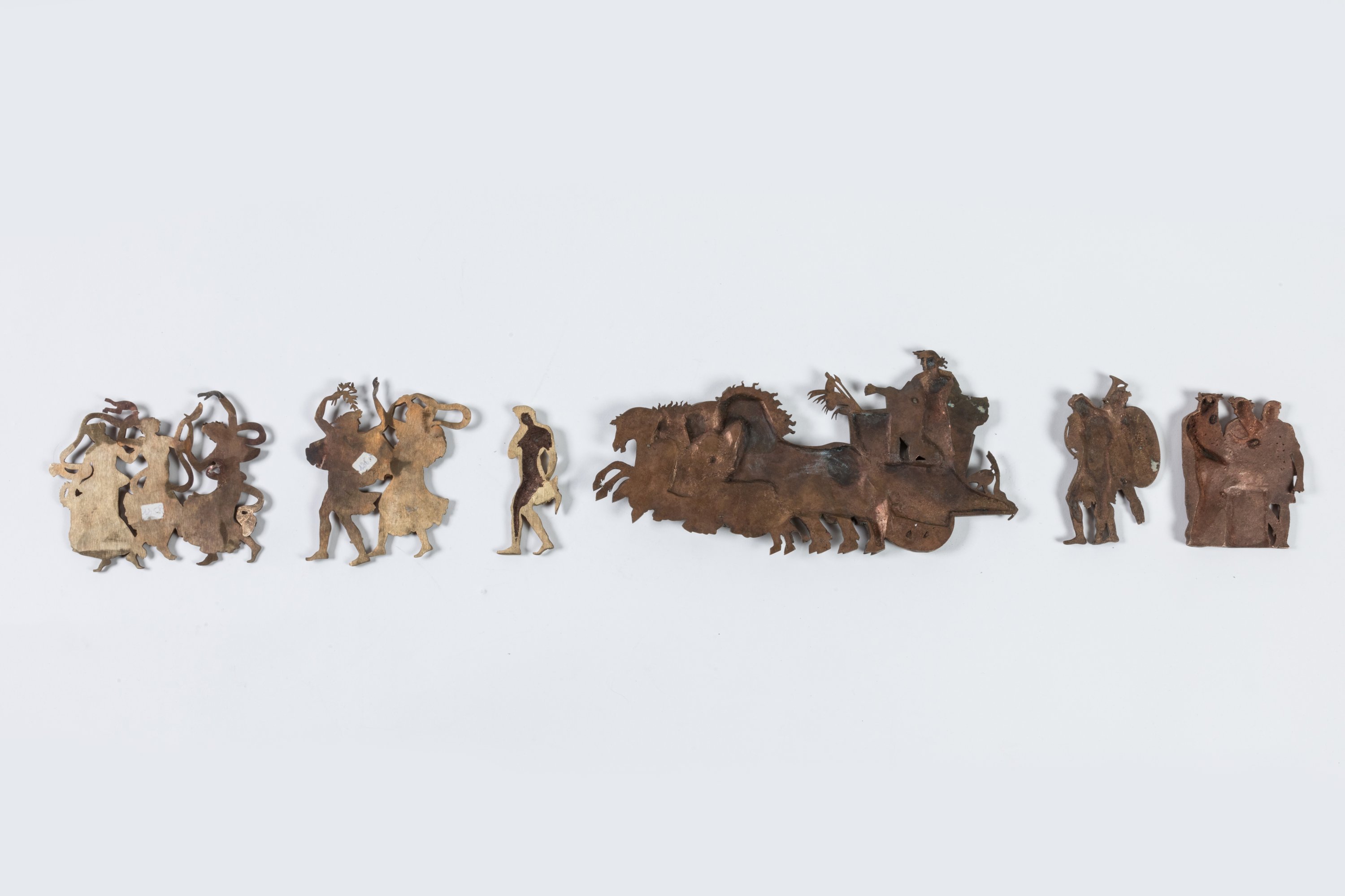 Nos six bas-reliefs sont les premières fontes en bronze par Thomire de la frise du "Triomphe de Trajan" d'après un dessin de Dupasquier. Outre les frises ornant les façades des consoles livrées par Jacob-Desmalter en 1808 pour le deuxième ou grand salon des petits appartements de l'Impératrice à Fontainebleau, ou la cheminée en malachite de Demidoff en 1806, Thomire expose un autre tirage en bronze au Salon en 1812 et 1814. Comme s'interroge Audrey Gay-Mazuel, "comment expliquer que la première fonte en bronze de cette frise, ainsi que le dessin original à la plume et à l'encre, aient été conservés au sein de la maison Odiot? Jean-Baptiste-Claude Odiot projetait-t-il de la décliner sur un grand vase? Nous n'en connaissons aucun usage par l'orfèvre. Ces éléments proviennent certainement d'échanges de modèles menés avec le bronzier Thomire, un de ses plus proches collaborateurs. Ils peuvent aussi avoir été apportés à Odiot par Dupasquier lui-même, qui crée et dessine des modèles de pièces de forme pour l'orfèvrerie" (in. Audrey Gay-Mazuel, op. cit., p. 188).